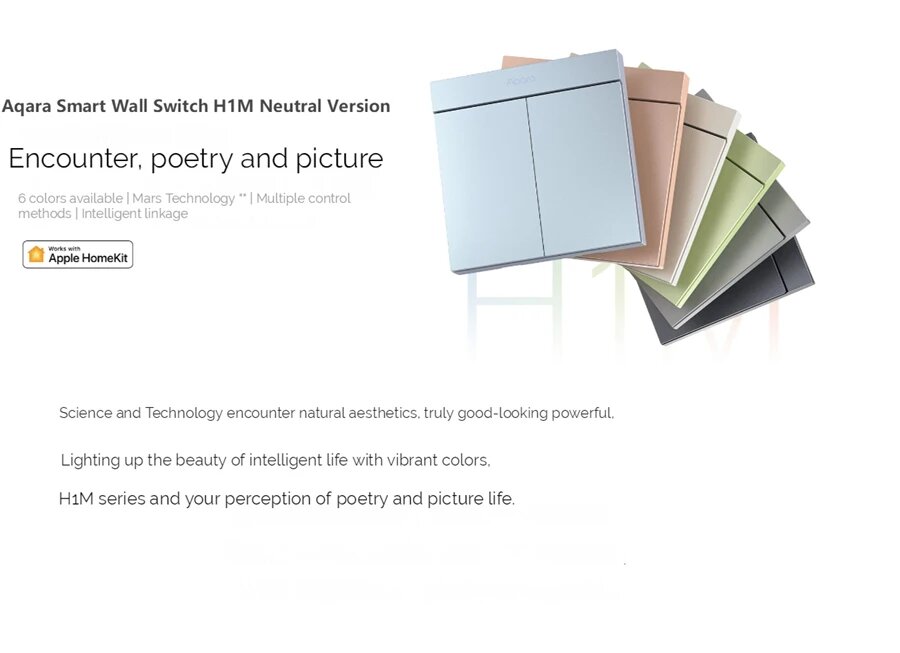 Умный настенный выключатель Aqara H1M, нейтральный, 6 цветов, wireless 1key