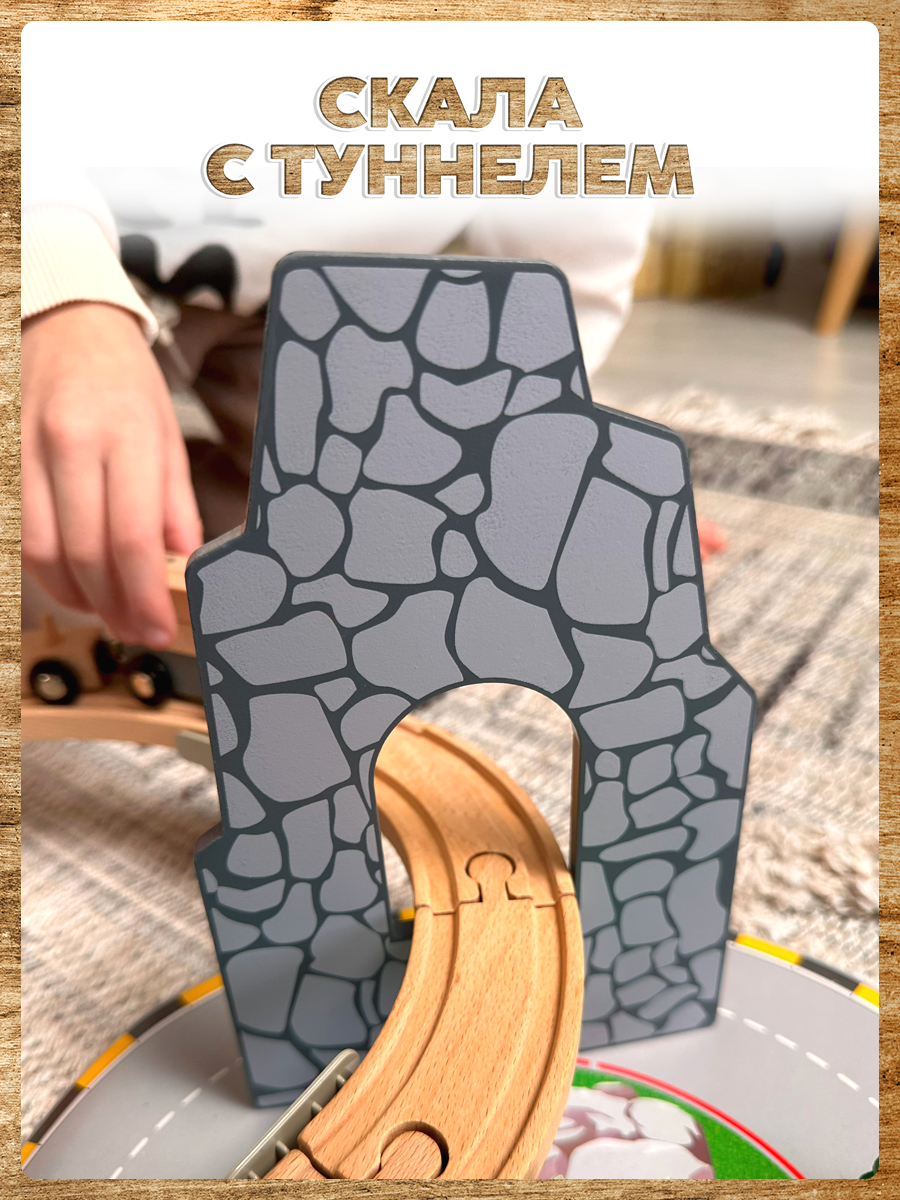Деревянная железная дорога А.Паровозиков, с краном, 100 элементов интересное: