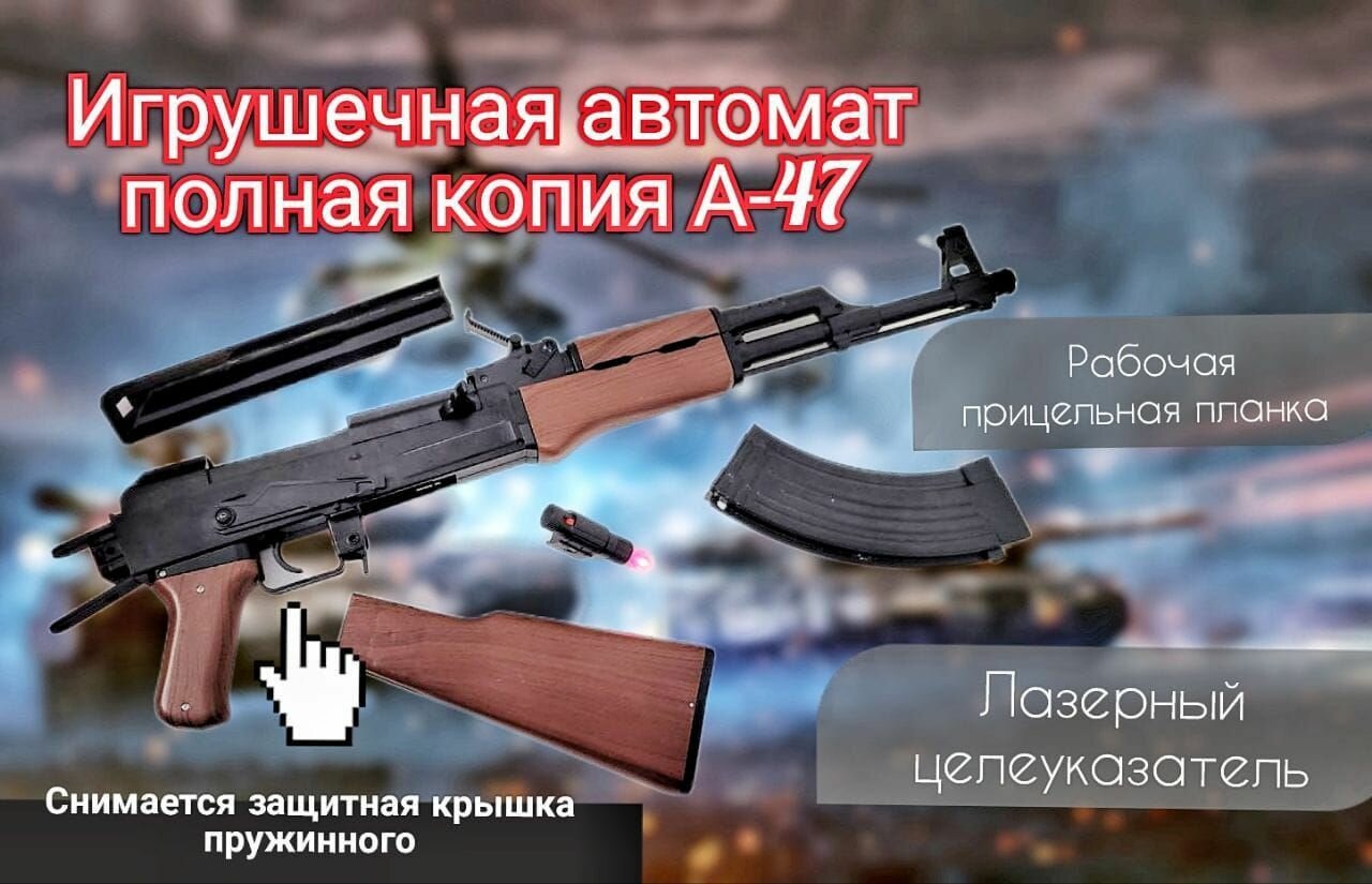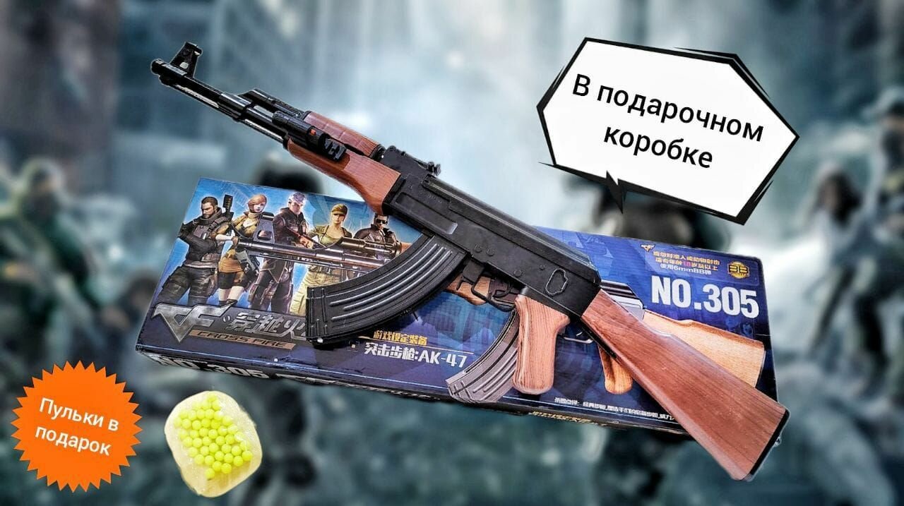 Игрушечный автомат Калашникова детский под АК-47 пластиковый воздушный для пулек 6 мм интересное: