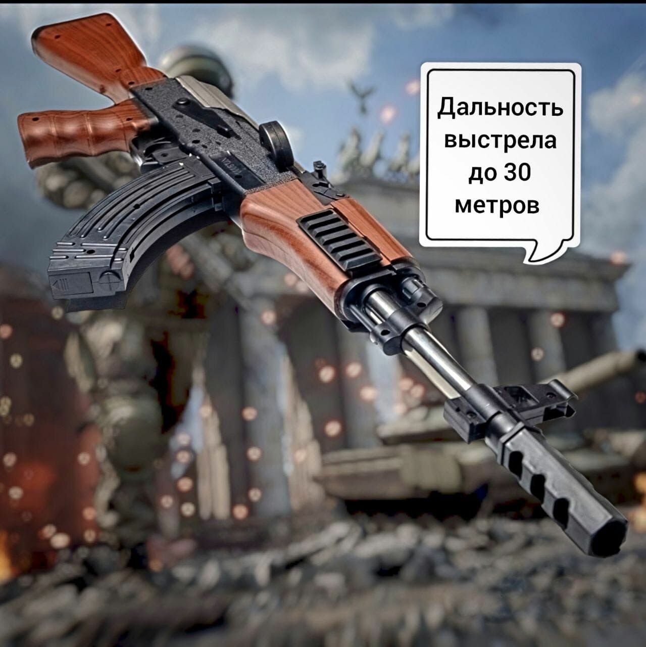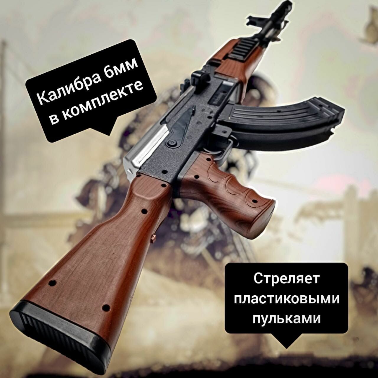 Игрушечный автомат Калашникова детский под АК-47 пластиковый (64 см) в коробке интересное:
