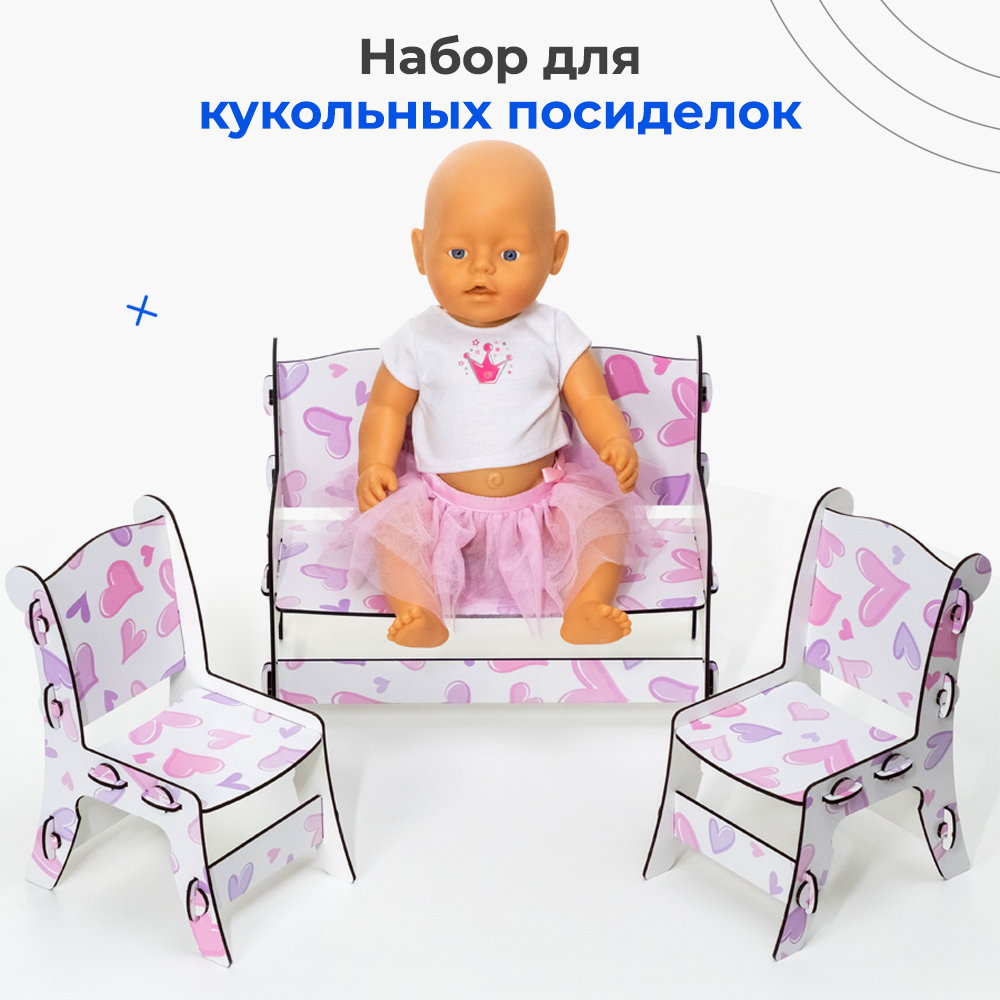 Стол и стулья для кукол пупсов до 45-53 см "Веселые Единороги"