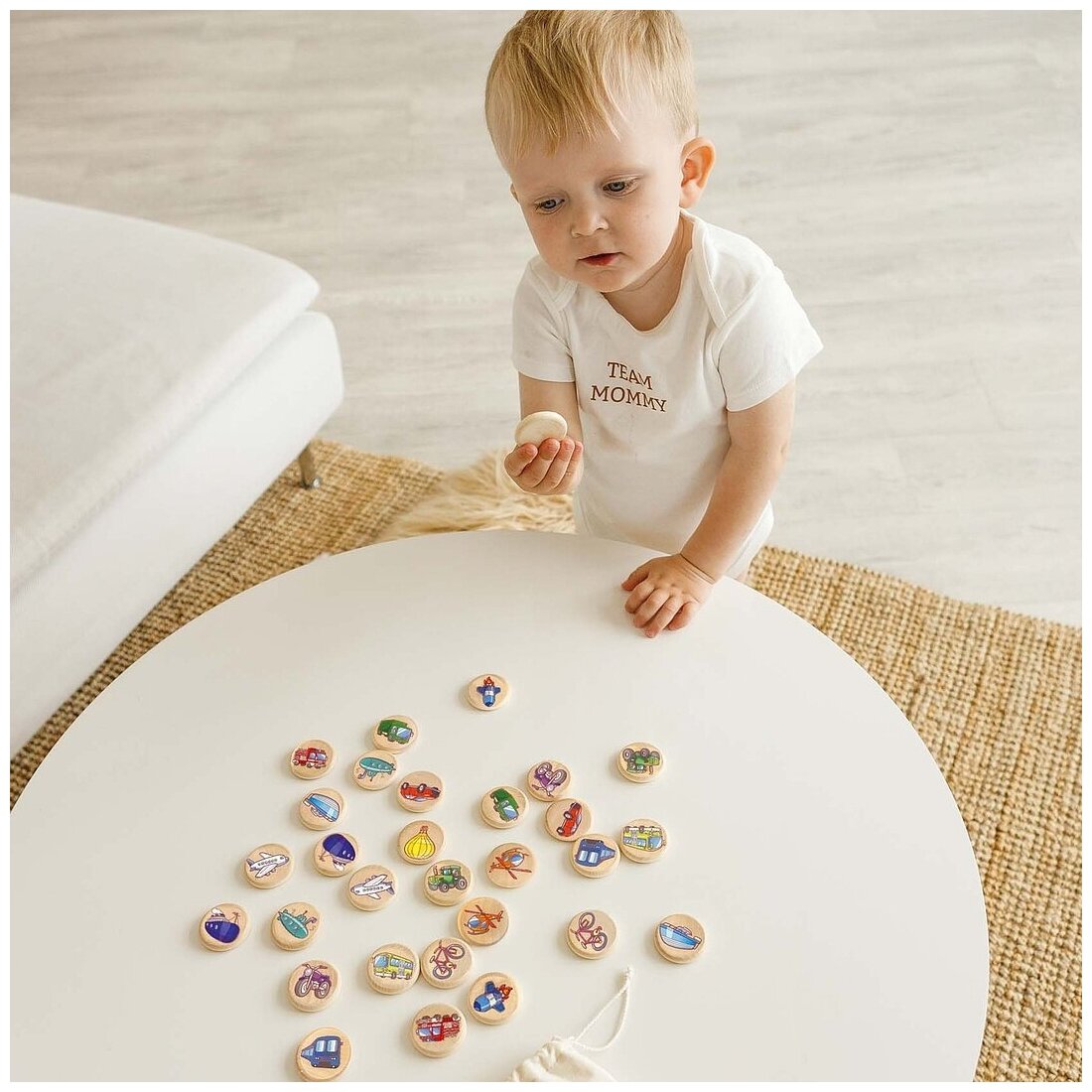 Мемори Транспорт 30 фишек/мемо/настольная игра для детей/развивабщие деревянные игрушки для малышей Ulanik