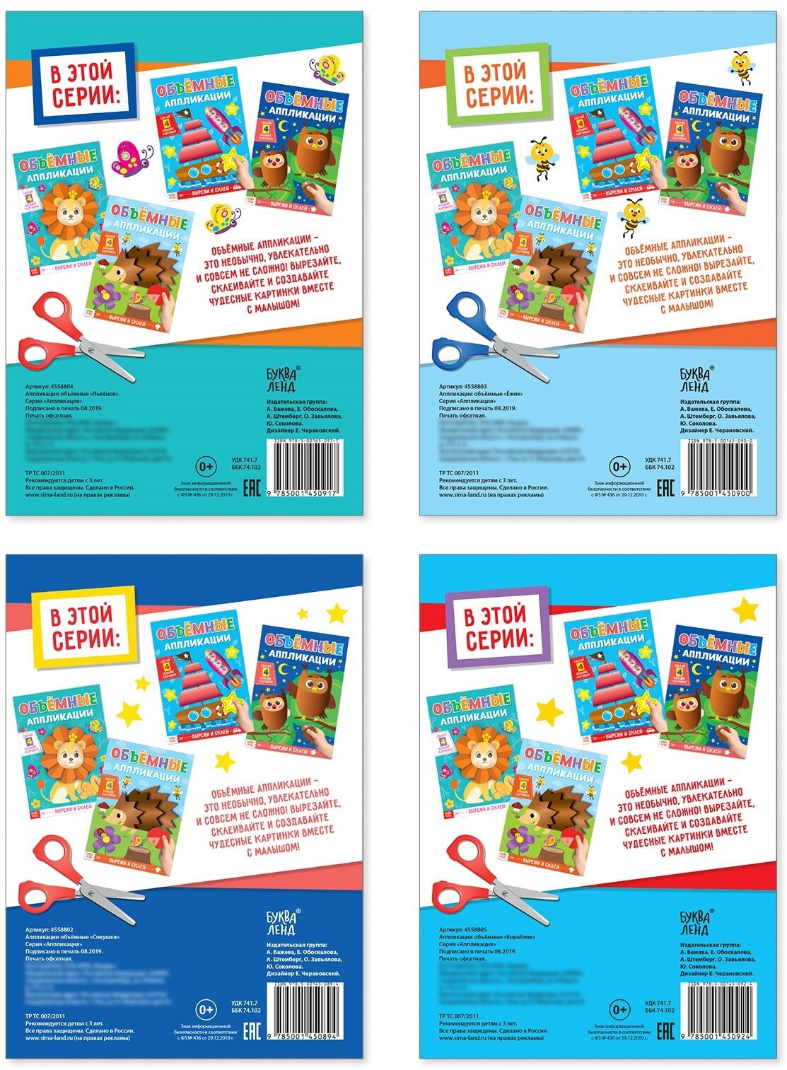 | Дополнительная информация | 4 шт по 20 страниц; материал для аппликации: бумага, картон; |
