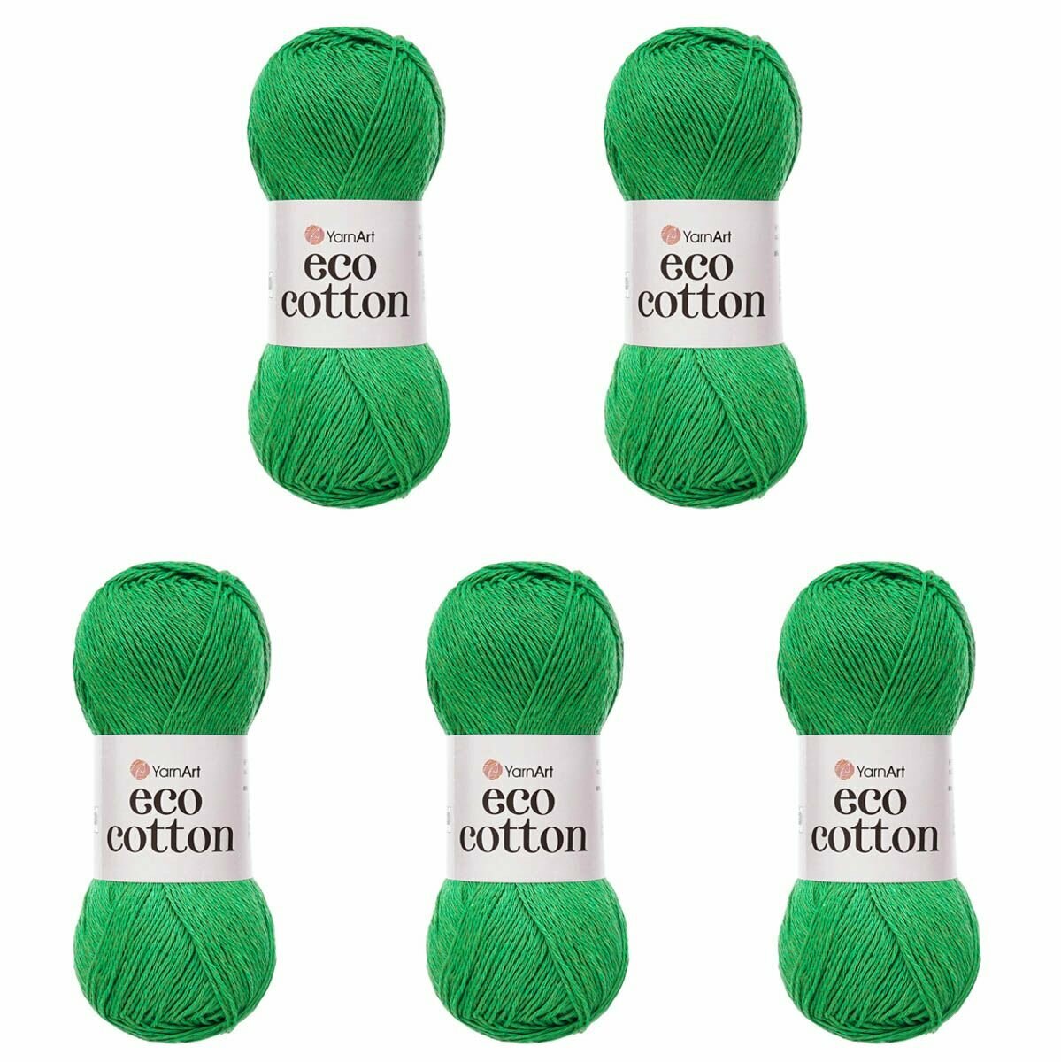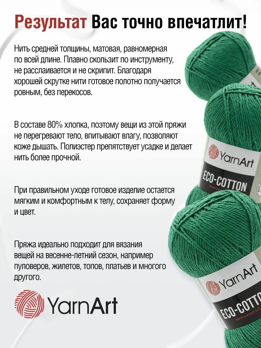 Пряжа для вязания YarnArt 'Eco Cotton', 100г, 220м (85% хлопок, 15% полиэстер) (767 зеленый), 5 мотков