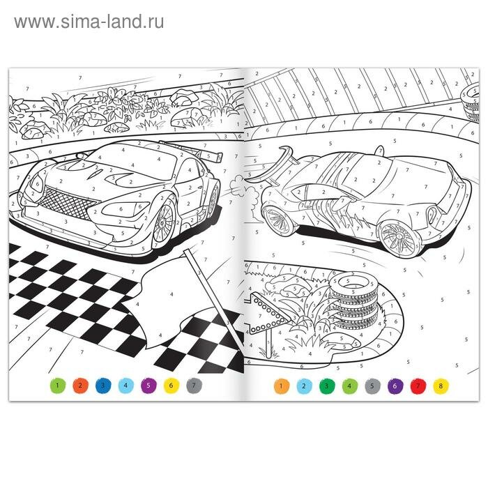 СохранитьДетская раскраска по номерам "Гонка чемпионов", развитие творческих способностей и логического мышления, 16 стр., формат А4 интересное:
