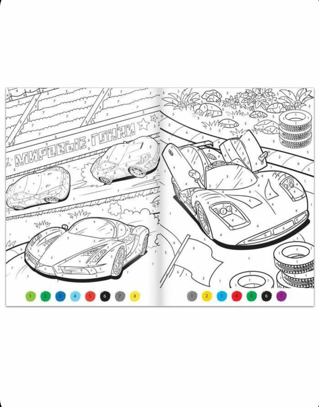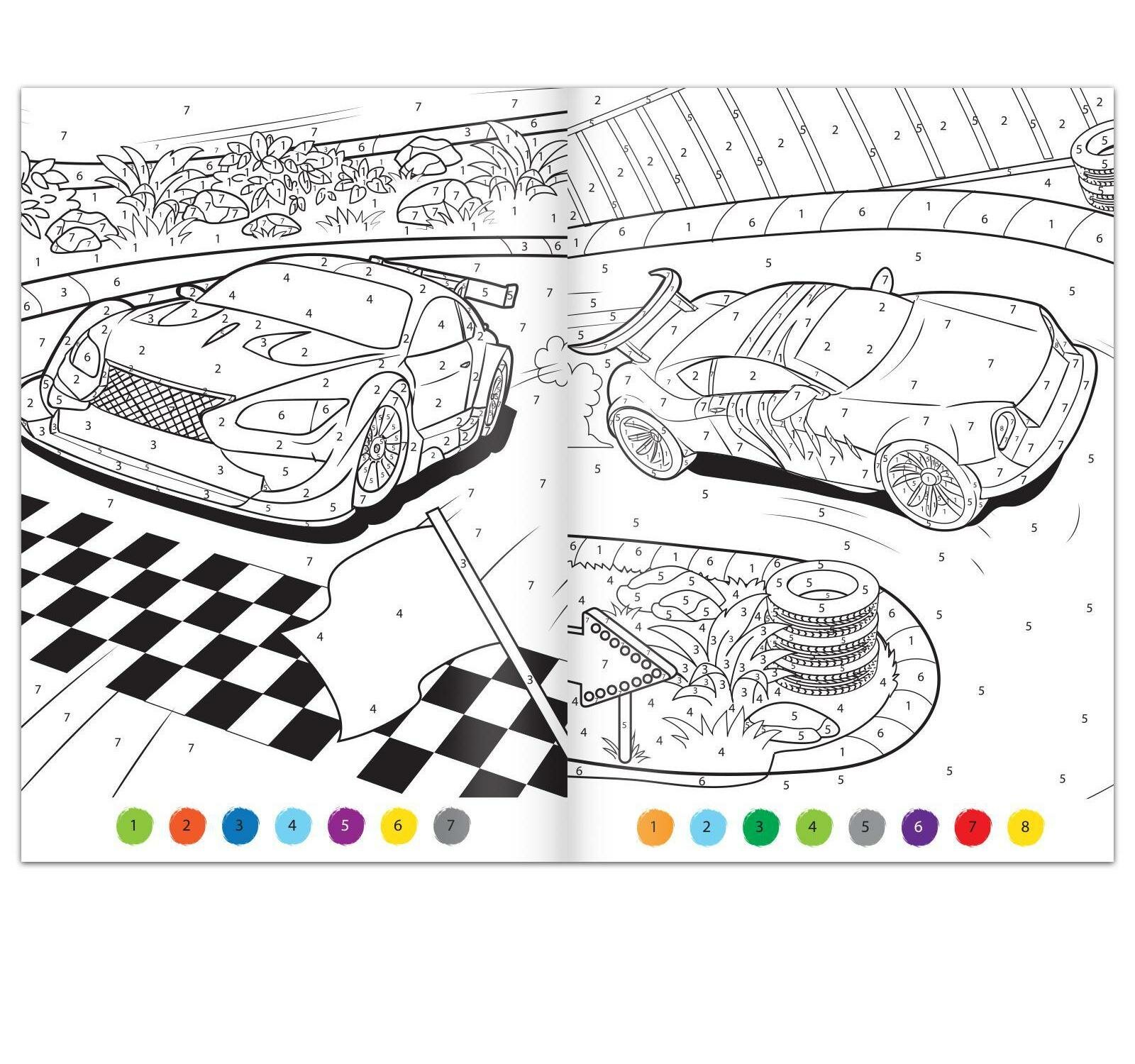 Купить Детская раскраска по номерам "Гонка чемпионов", развитие творческих способностей и логического мышления, 16 стр., формат А4