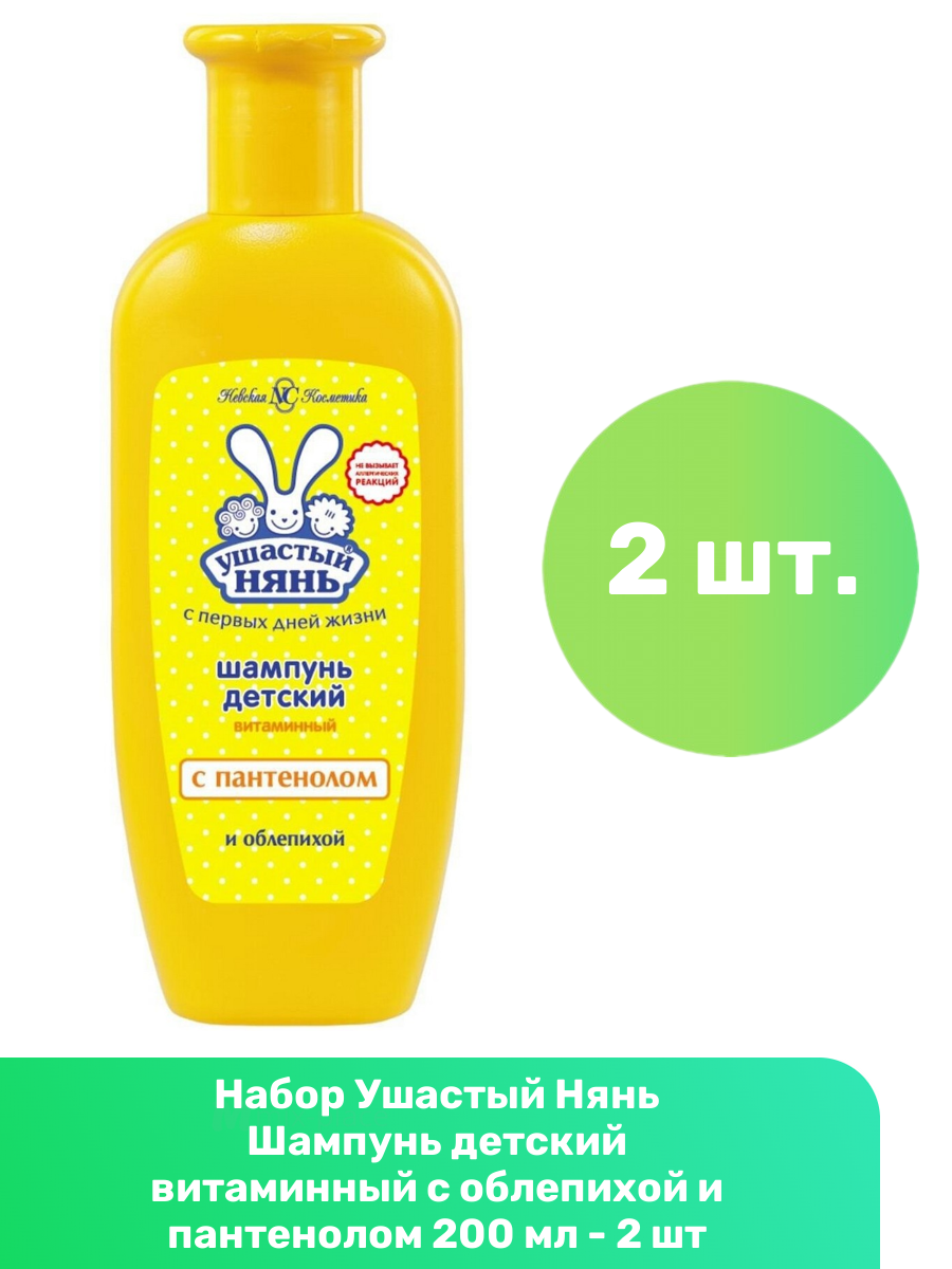 Детский шампунь витаминный с пантенолом и облепихой Ушастый нянь 200 мл. х 2 шт.