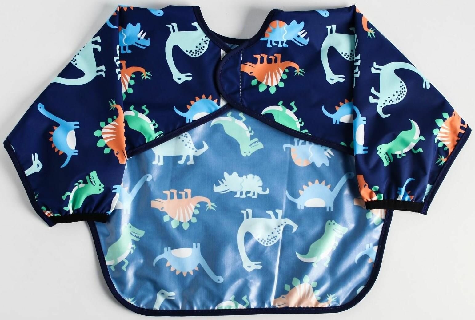 Купить Нагрудник-рубашка для кормления M&B «Динозавры» непромокаемый на липучке, с карманом