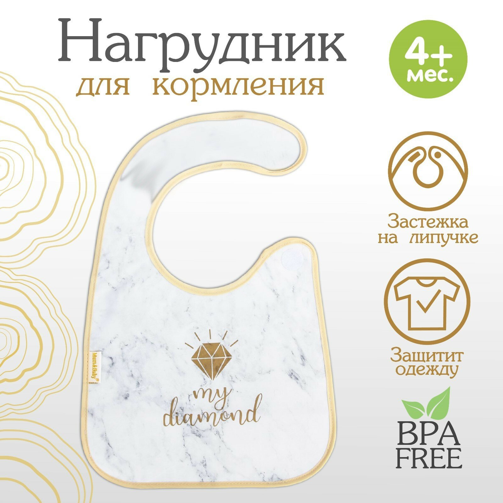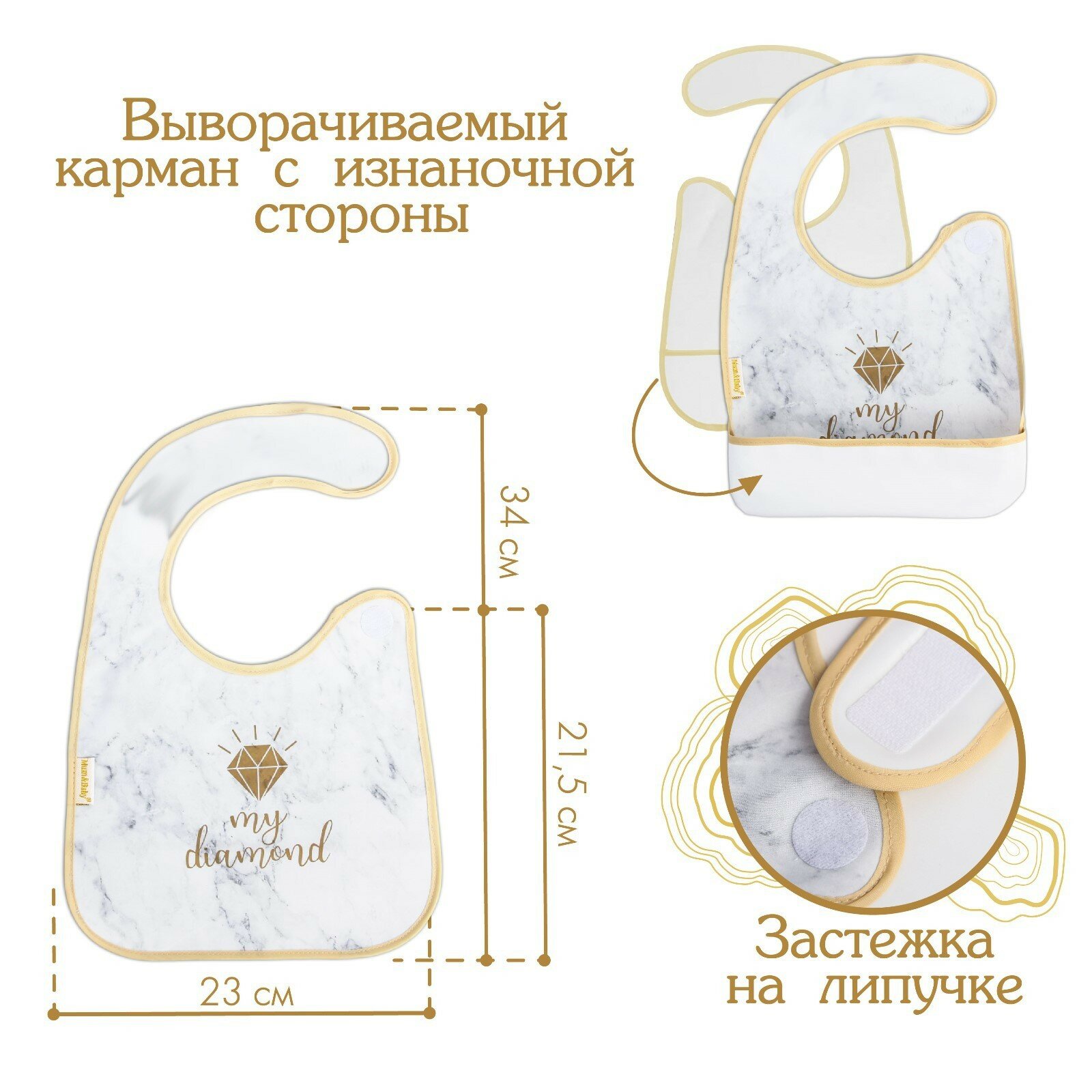 Нагрудник для кормления «My diamond» непромокаемый на липучке, с карманом интересное: