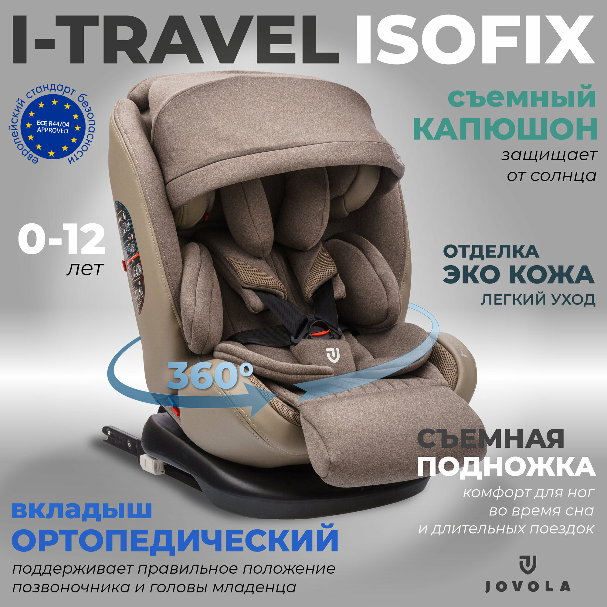 Детское автокресло Jovola I-Travel Isofix растущее, группа 0/1/2/3 (до 36 кг), бежевый
