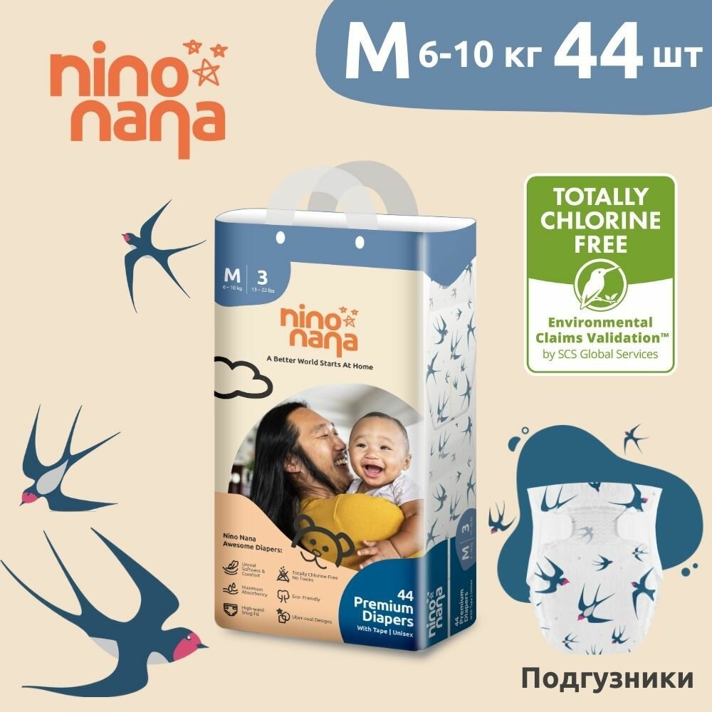 Купить Подгузники Nino Nana M 6-10 кг. 44 шт. Птички