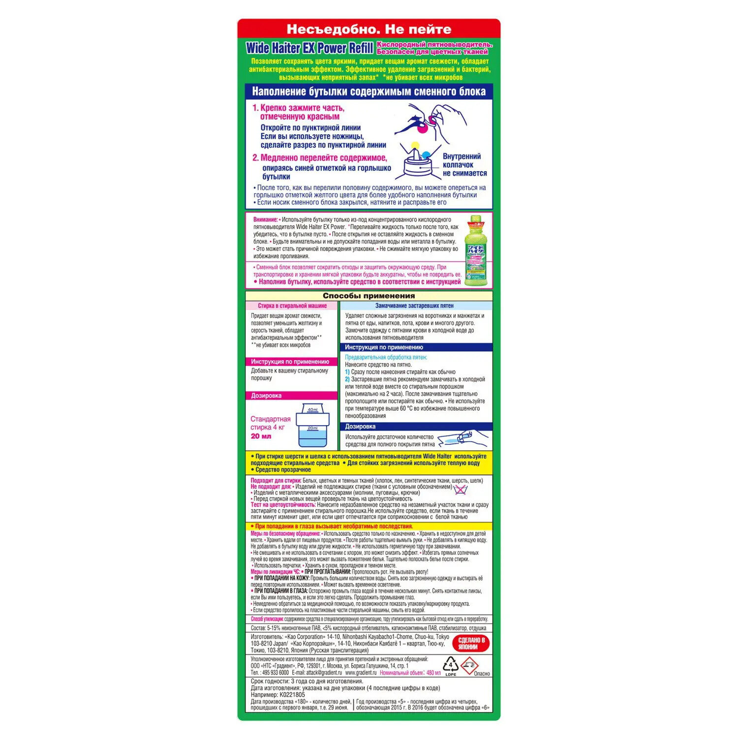 | Содержит | активный кислород / отбеливатель / энзимы |