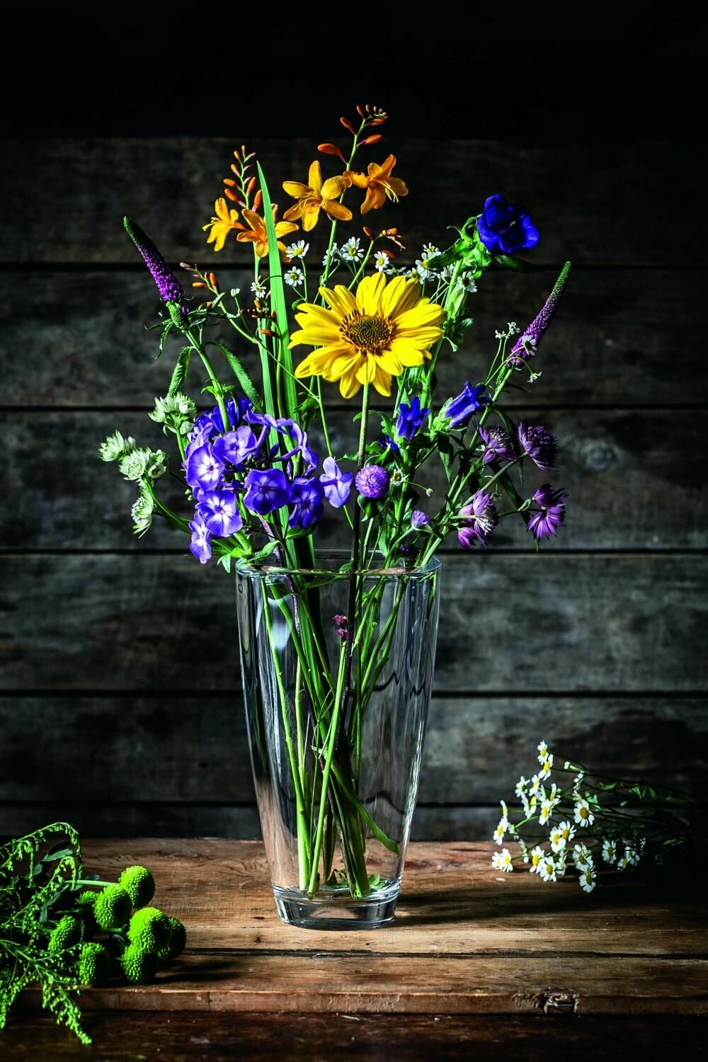 Прозрачная настольная ваза Bogacho Белла из стекла на декоративной ножке для букетов, высоких цветов и сухоцветов