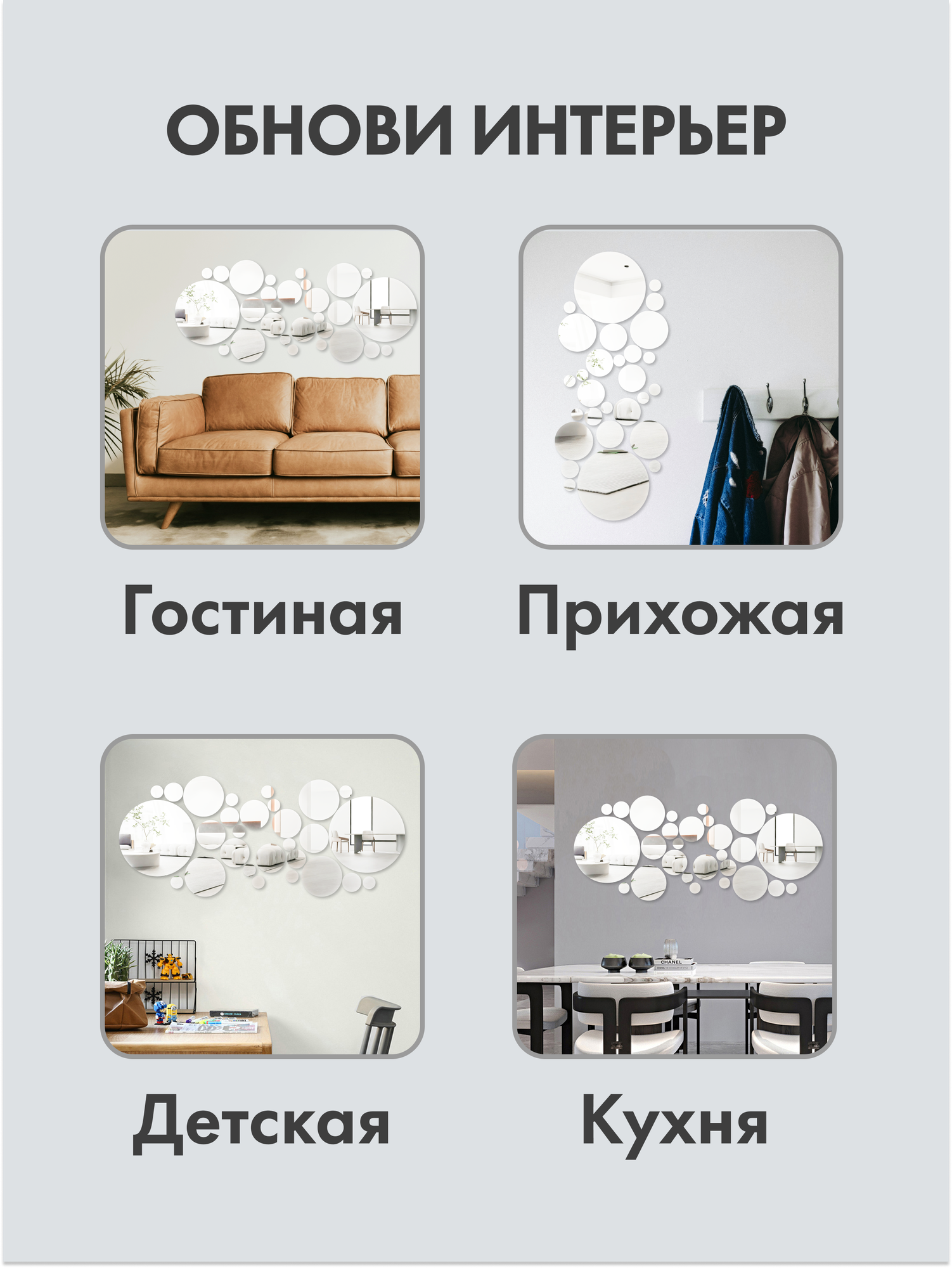 Зеркальные наклейки Имидж Дом "Круги", акрил, влагостойкие, 26шт интересное: