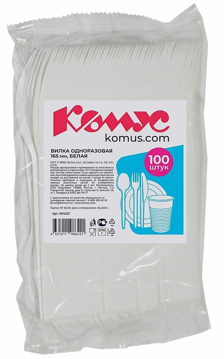 Вилки одноразовые Комус, пластиковые, 100 шт, белые интересное: