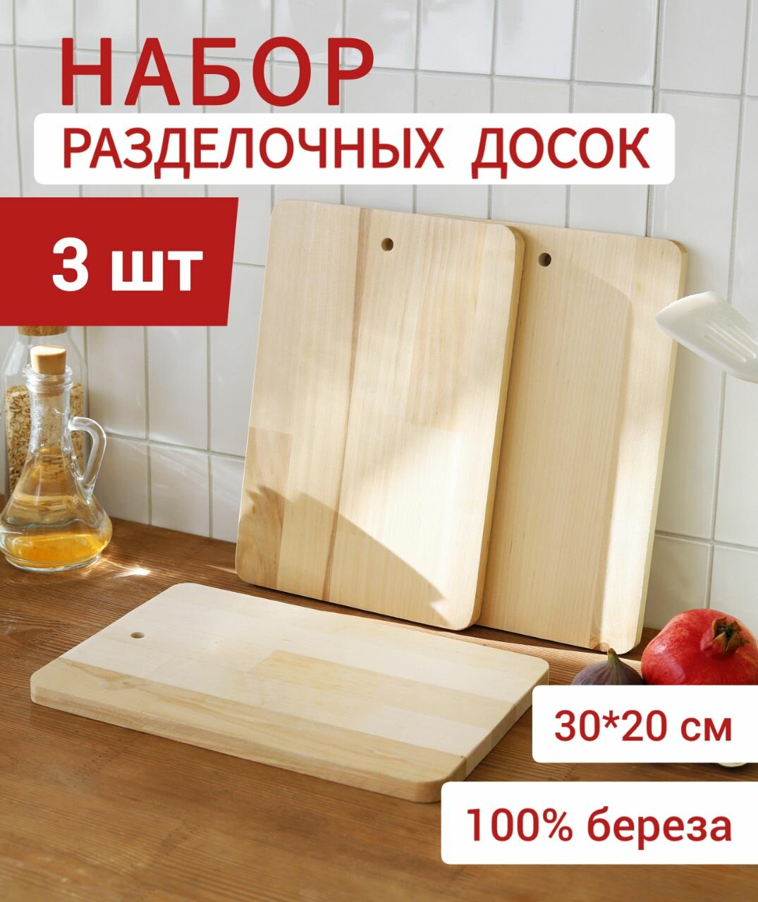 Набор разделочных досок деревянных 3 шт, береза 30х20 см