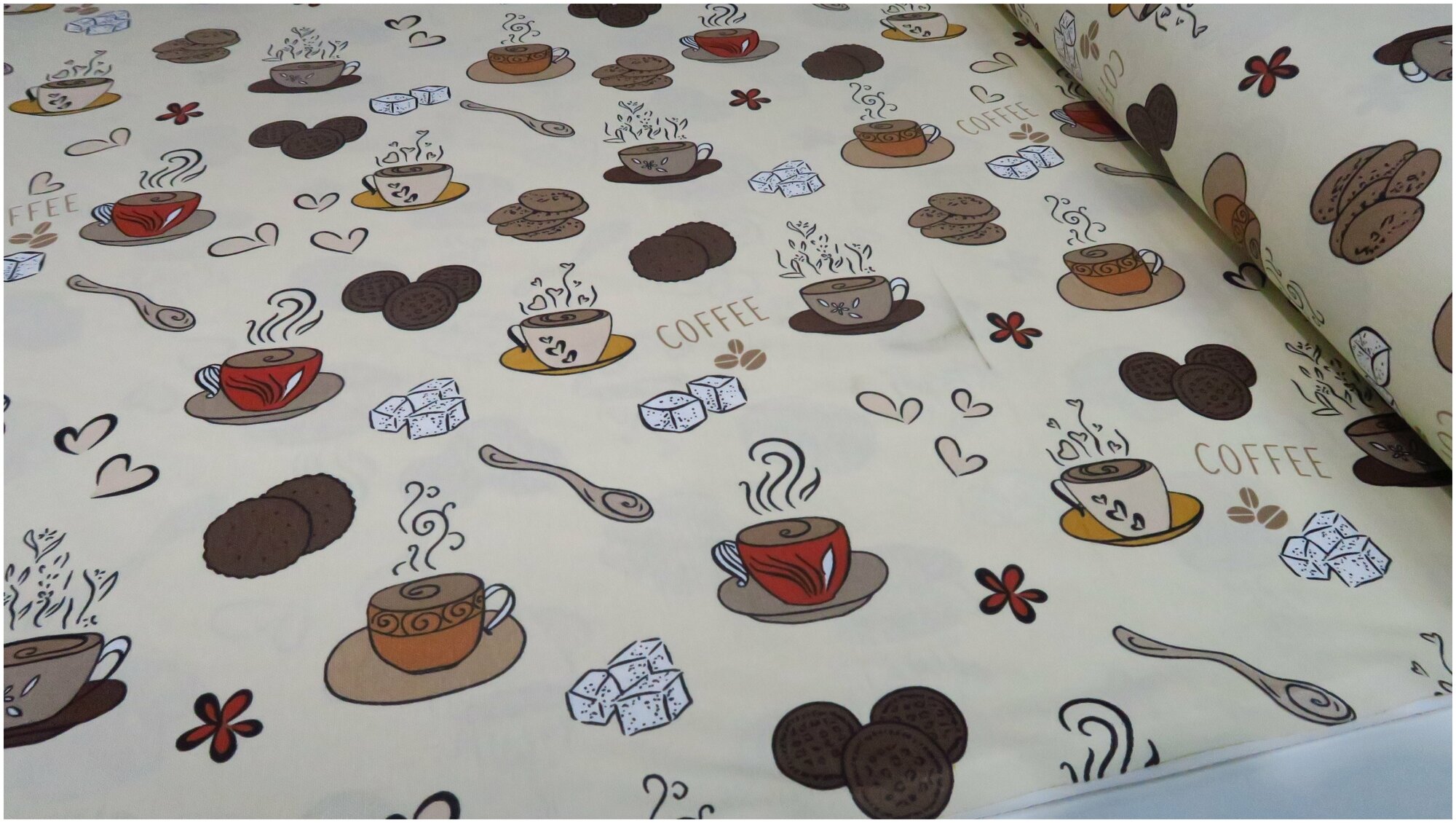СохранитьТкань DUCK с водоотталкивающей пропиткой, принт: "Кофе" (100 см. x 180 см.) интересное: