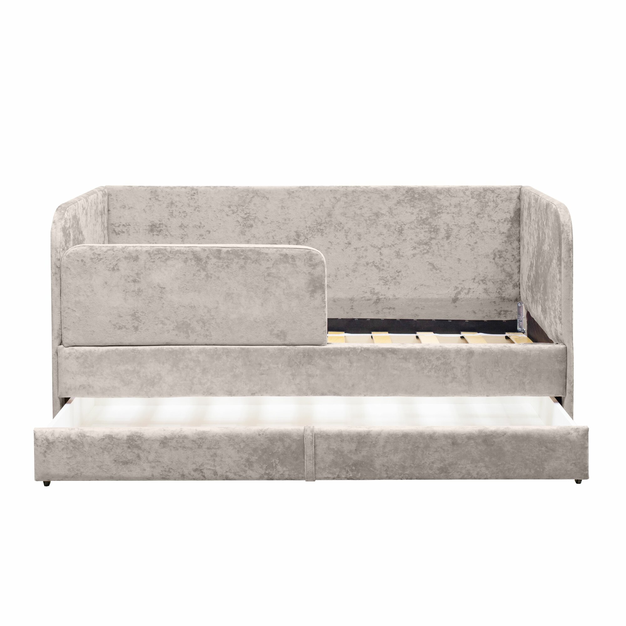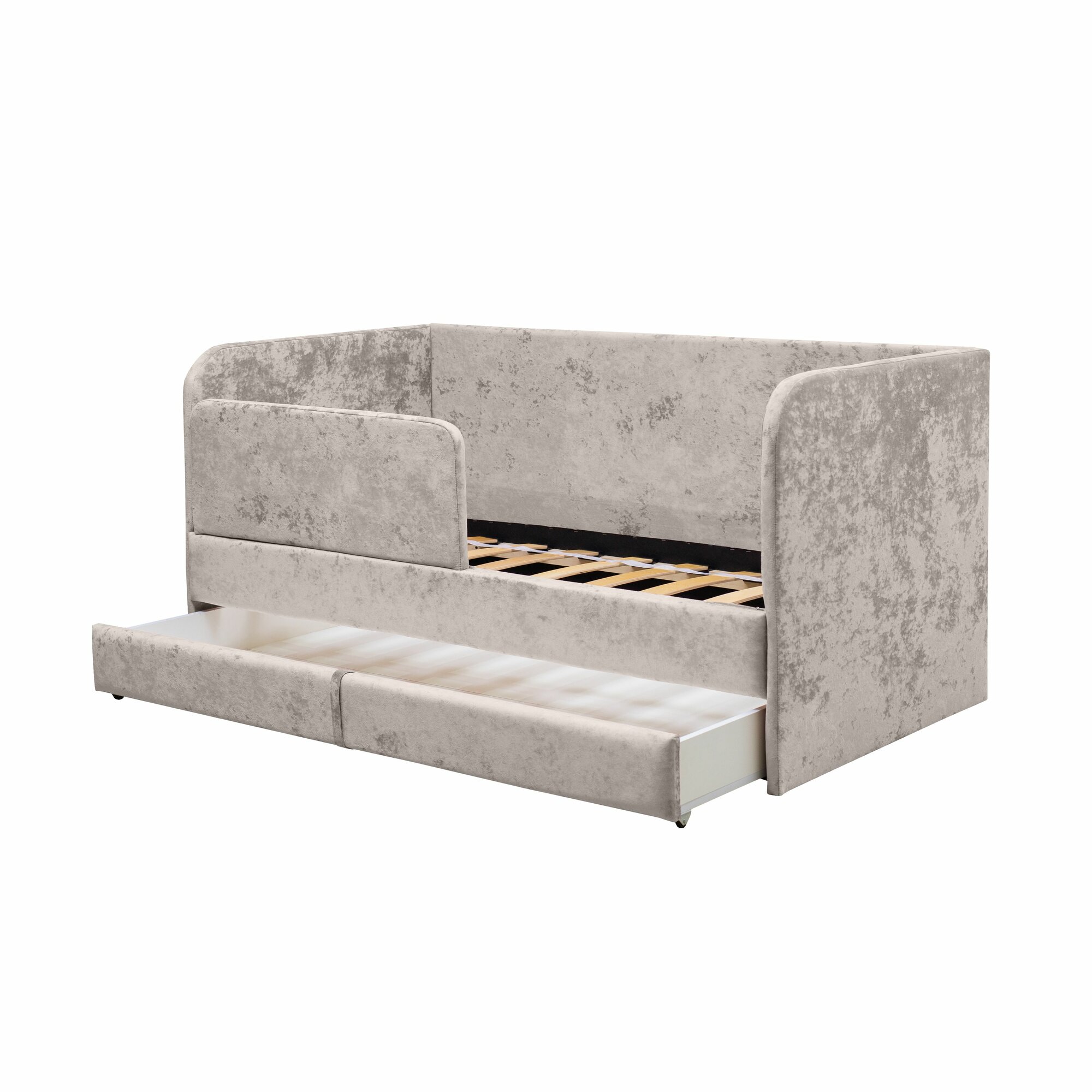 Кровать-диван "Непоседа" серая 200х90 см, 2 спальных места, с ящиком, защитным бортиком