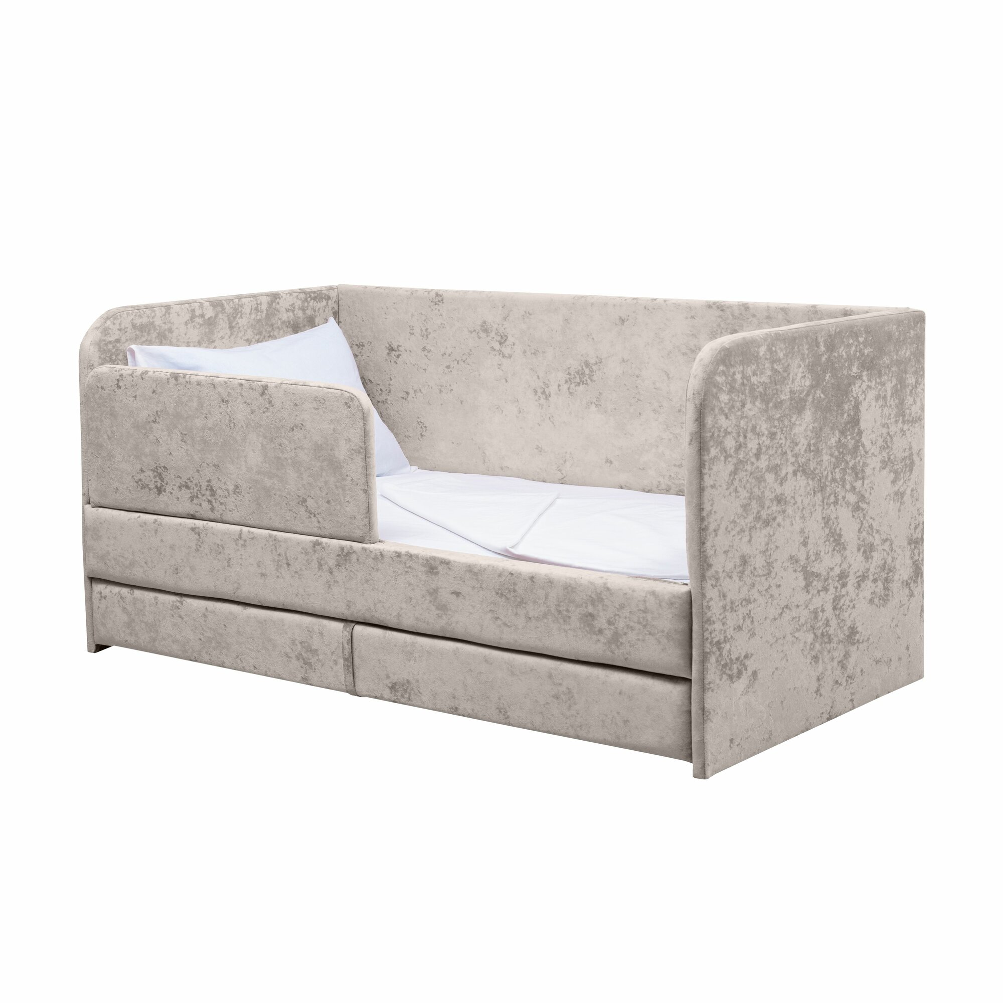 Кровать-диван "Непоседа" бежевая 160х80 см, 2 спальных места, с ящиком, защитным бортиком