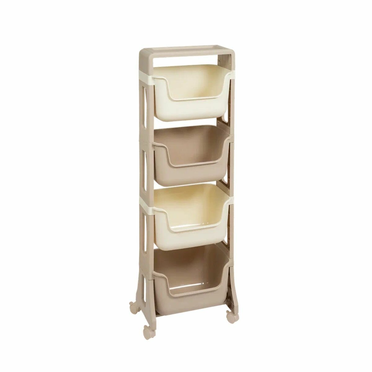 Этажерка на колесиках Джуниор 4 яруса, цвет латте - слоновая кость / детский пластиковый органайзер для хранения / подставка напольная на колесах