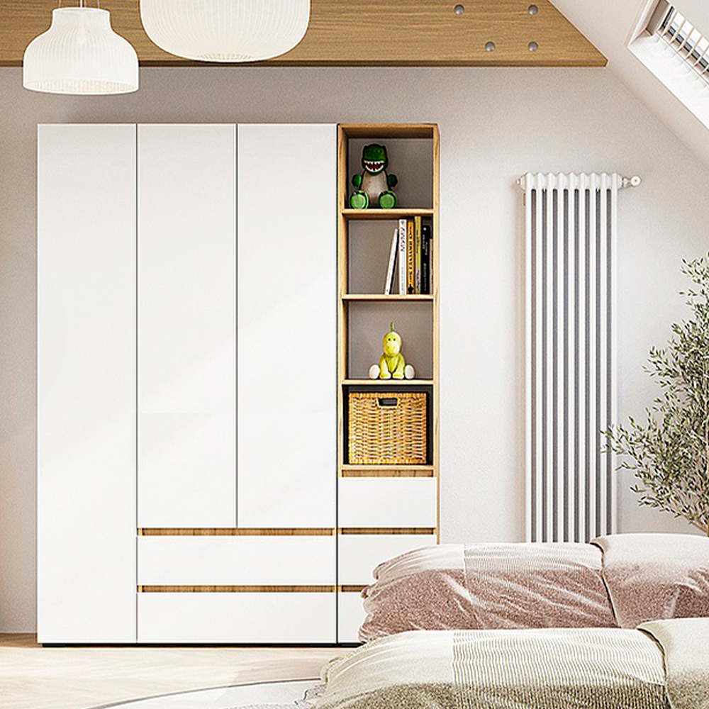 Шкаф для одежды распашной Нонтон Луас, 120 см, 7 полок и штанга, белый глянец