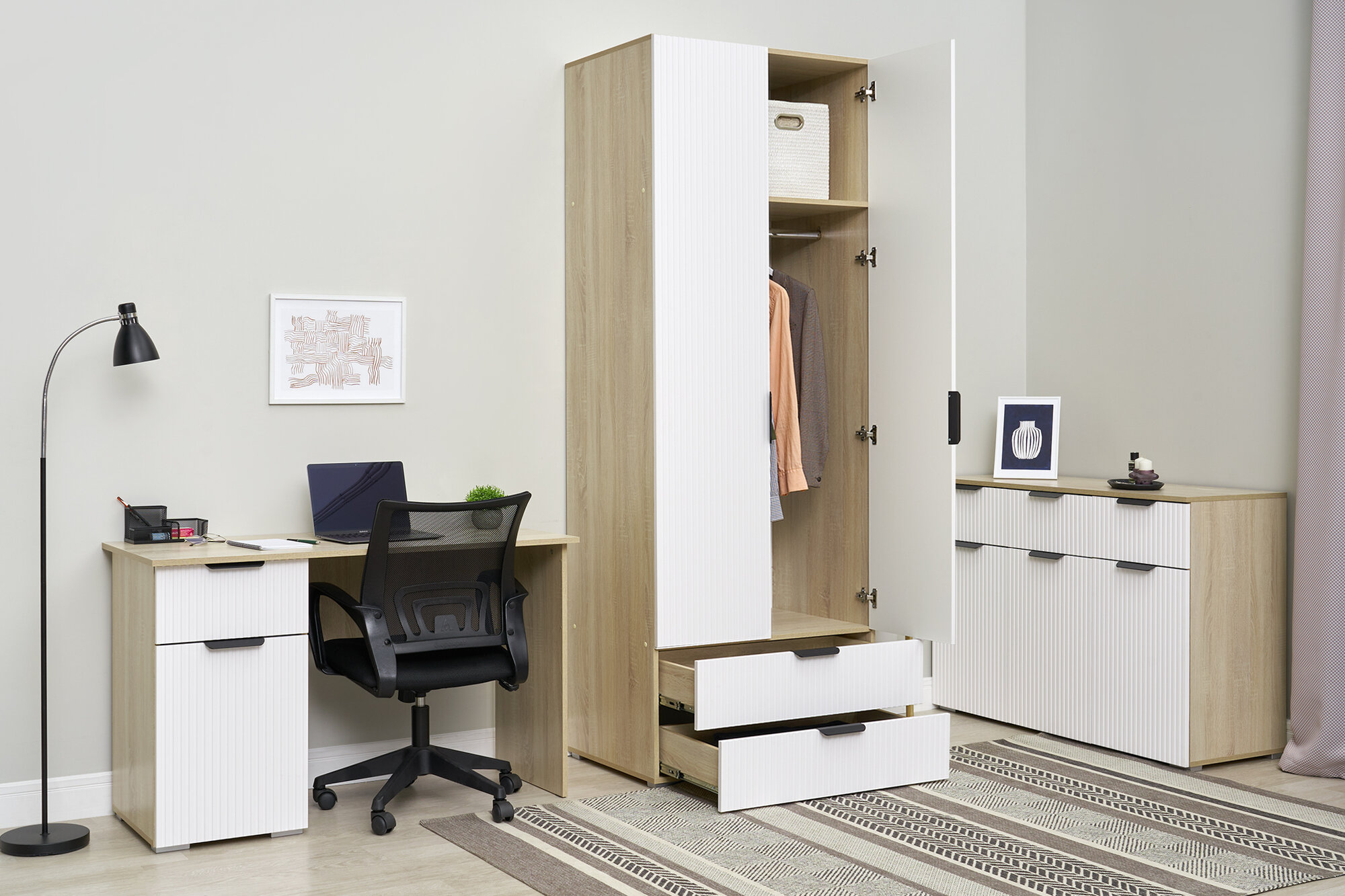 Купить Шкаф для одежды с ящиками Нонтон Норд Line дуб сонома / софт пломбир, 80 см