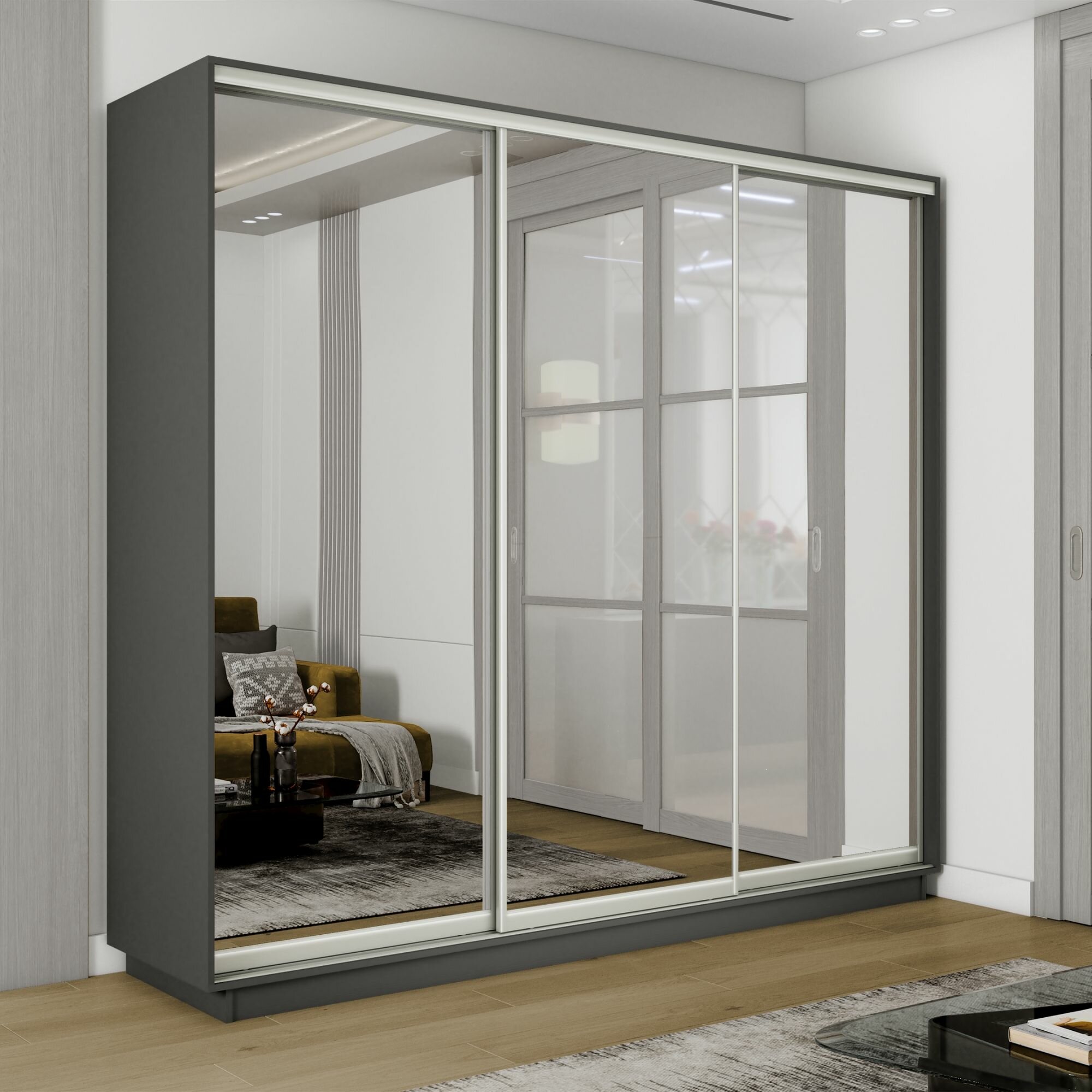 Шкаф-купе 2,4 Экспресс 3-х дверный 240х240х60 Зеркало/Зеркало/Зеркало серый диамант