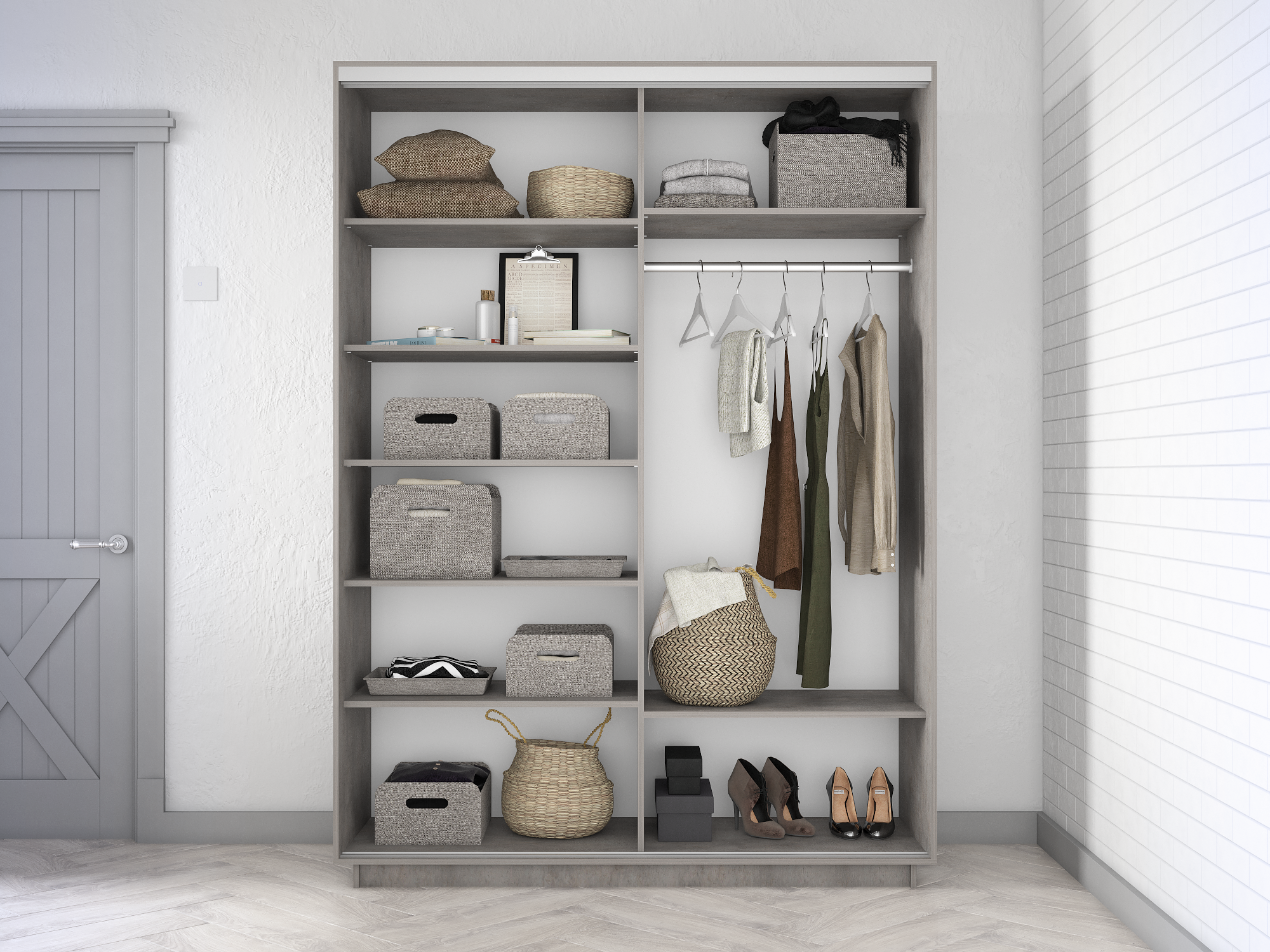 Шкаф-купе Экспресс 3дв. ДСП/Зеркало/ДСП, 180х60х240, Бетон