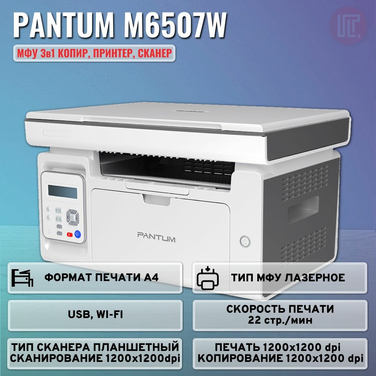 Pantum Pantum M6507W МФУ лазерное, монохромное, копир/принтер/сканер (цвет 24 бит), 22 стр/мин, 1200 x 1200 dpi, 128Мб RAM
