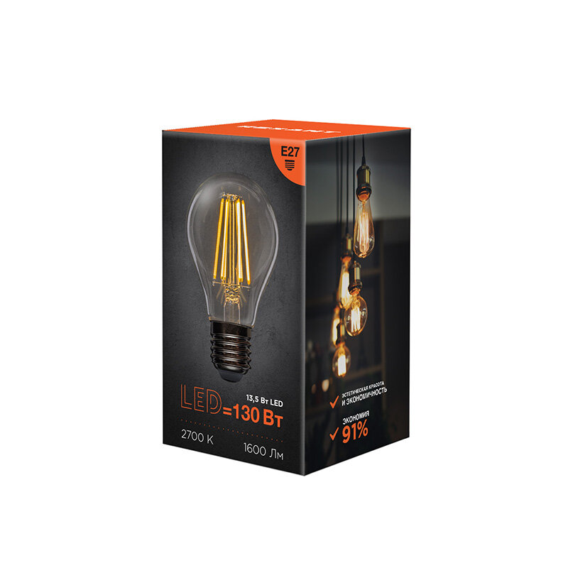 Лампочка филаментная E27 REXANT Груша A60 13.5 Вт 1600 Лм 2700K прозрачная колба интересное: