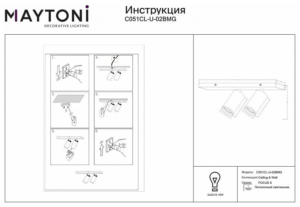 Светильник спот Maytoni Focus S C050CL-U-1B, GU10, 10Вт, кол-во ламп:1шт., Черный