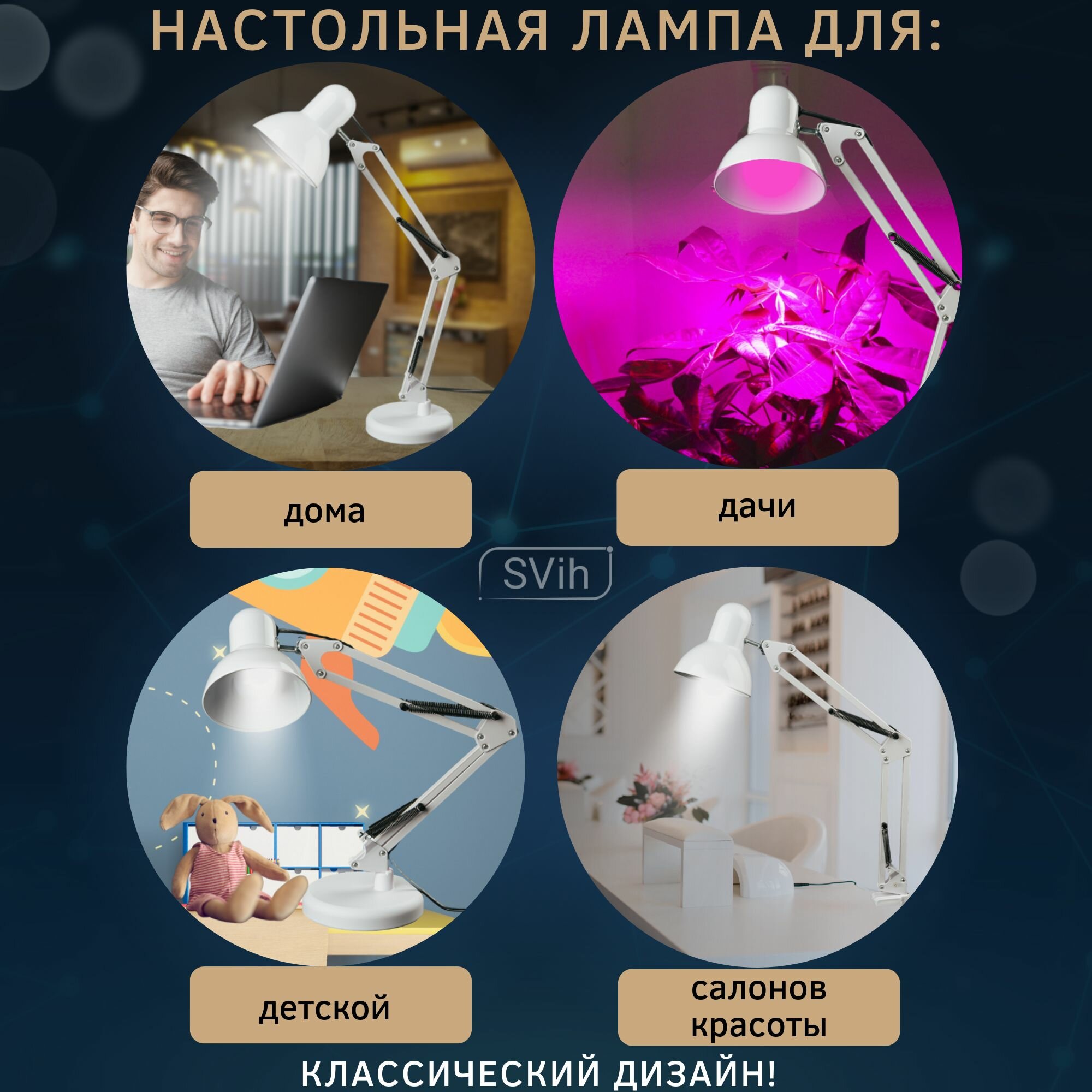 SVih Лампа настольная для маникюра, школьника светильник для дома, струбцина в комплекте интересное: