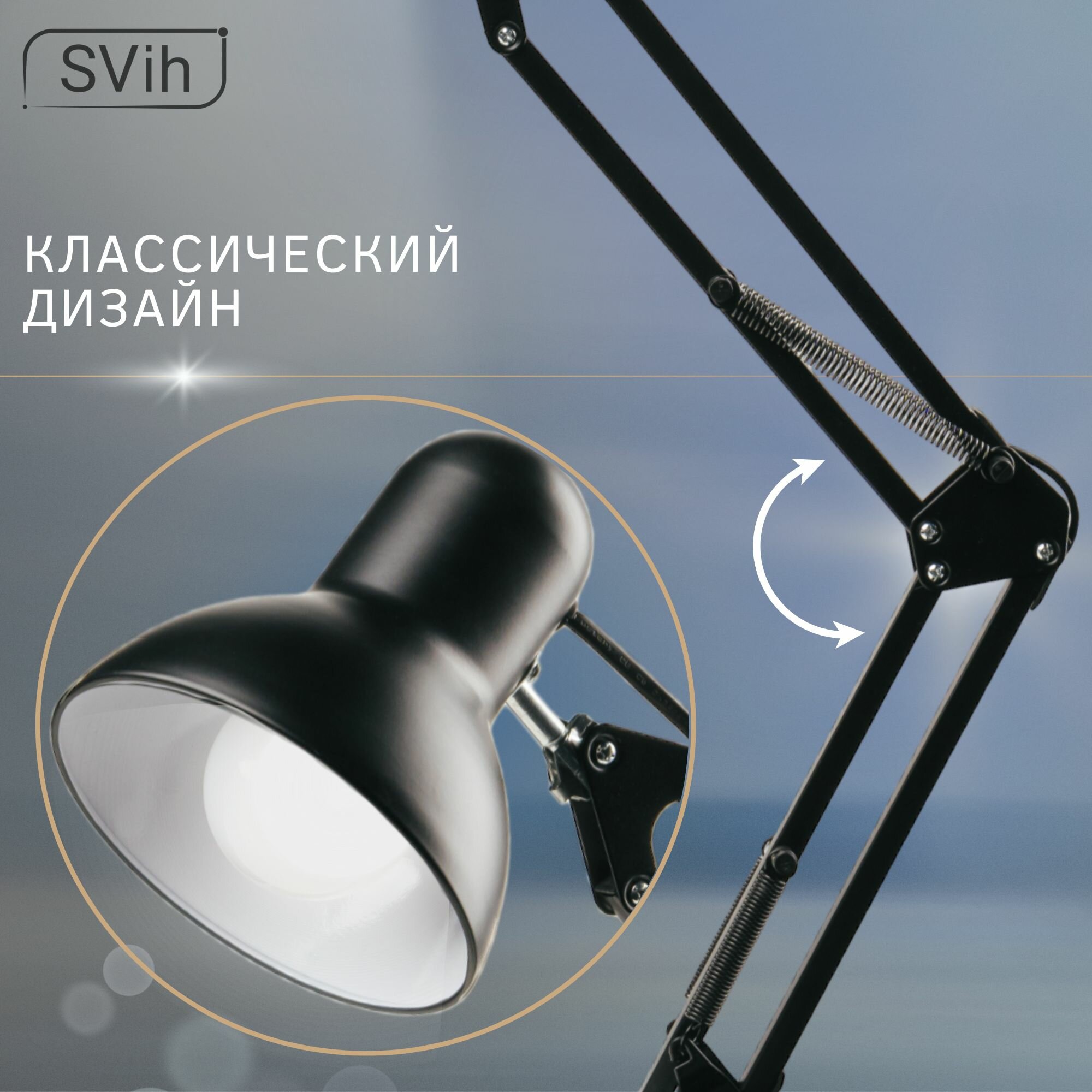 Настольная лампа SVih, E27, складная, струбцина, на проводе, чёрный интересное: