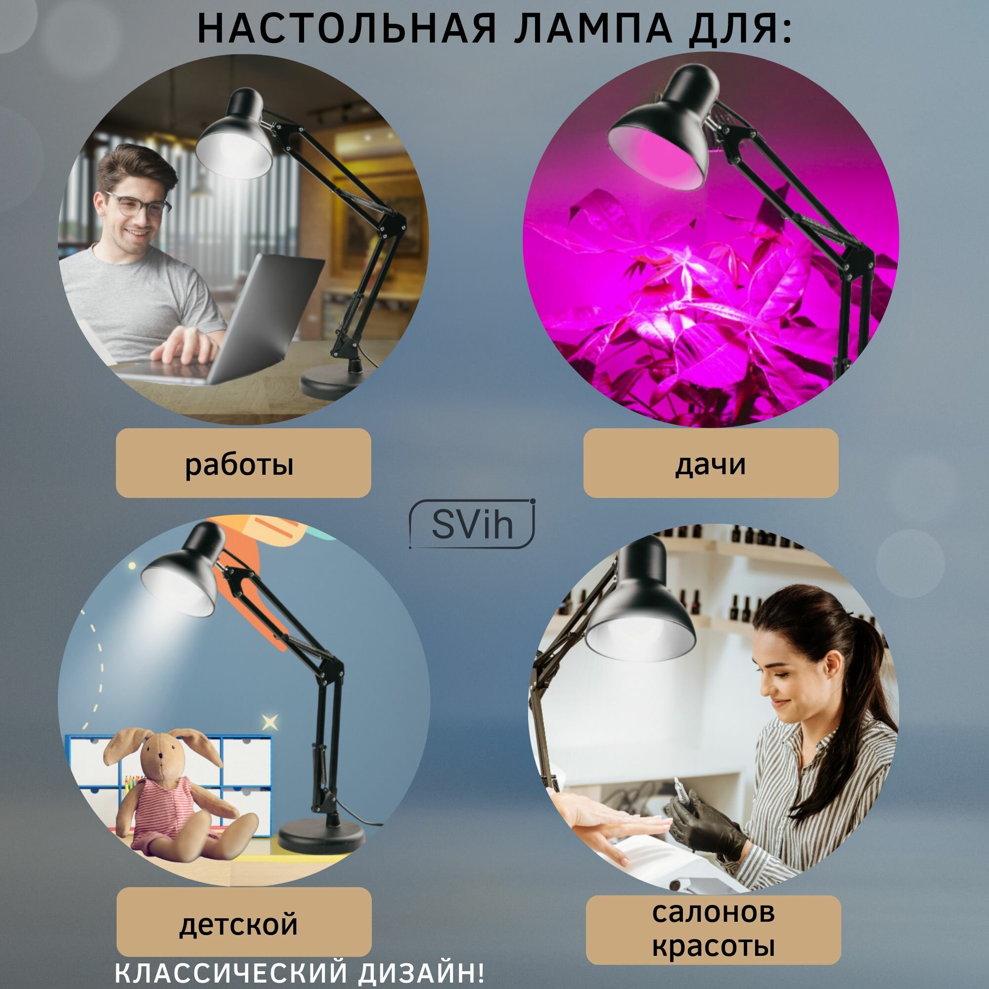 SVih Лампа настольная для маникюра, школьника светильник для дома, струбцина в комплекте
