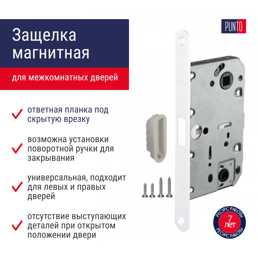 Замок магнитный врезной Punto (Пунто) ML96WC-50 WH белый для межкомнатных дверей