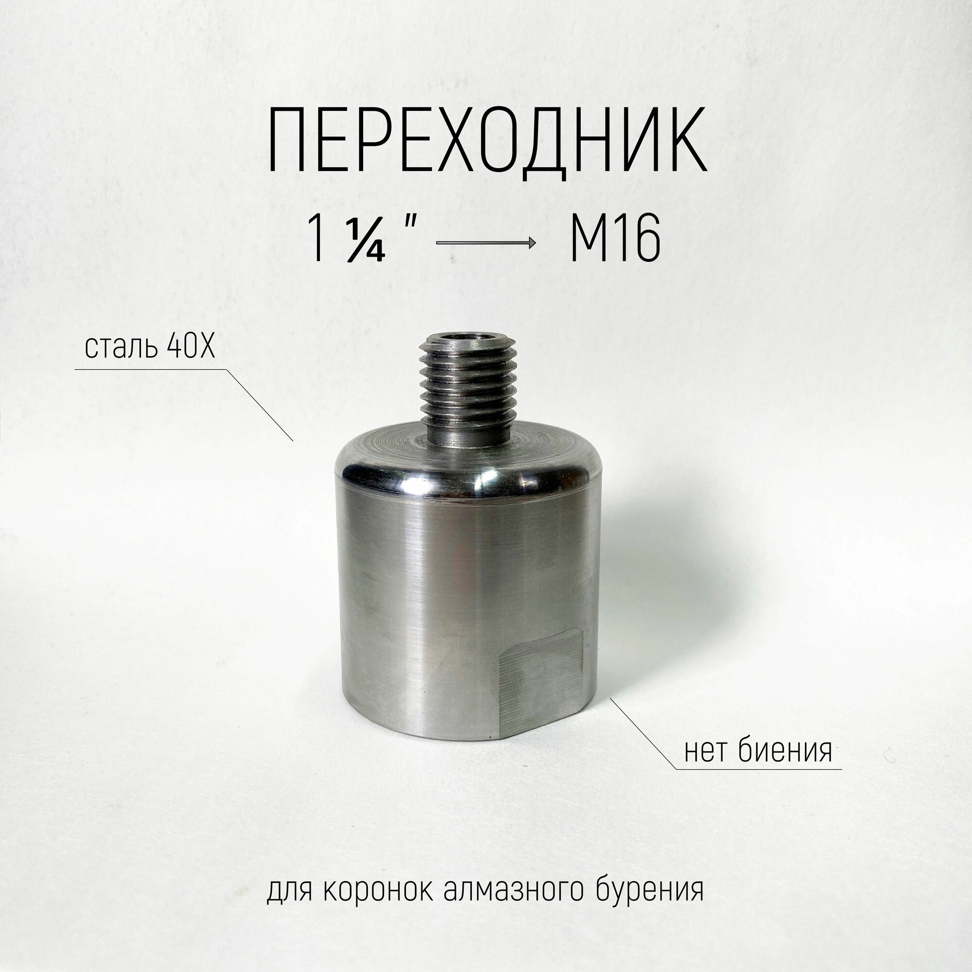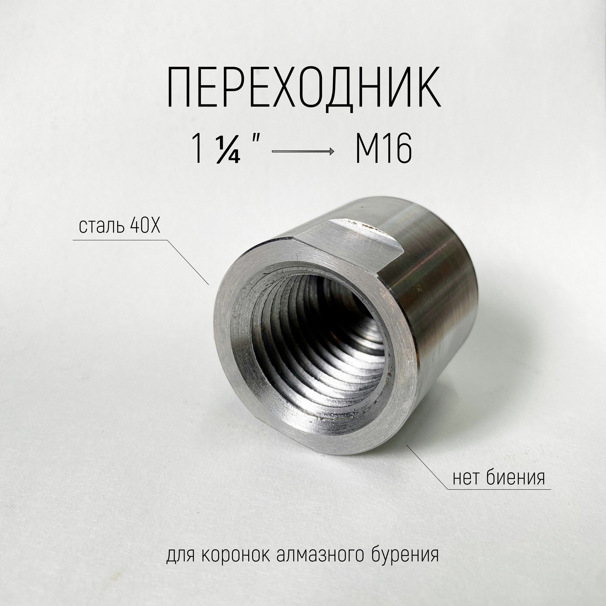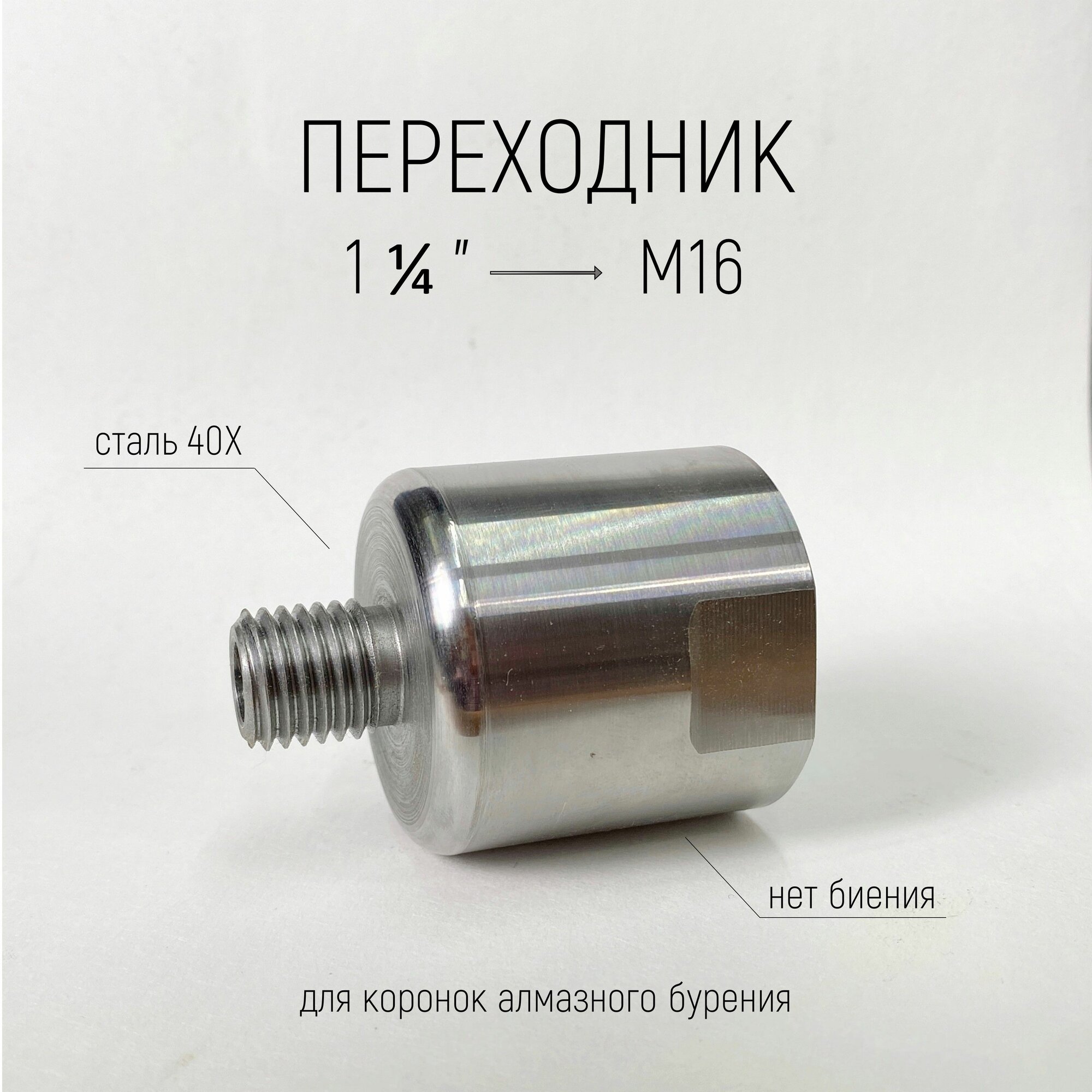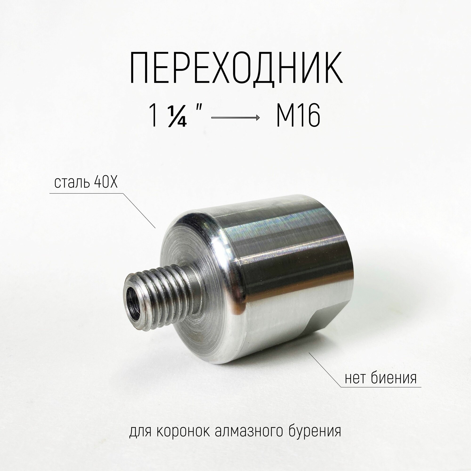 Адаптер переходник с 1 1/4 на М16 со сквозным отверстием 8 мм для коронок алмазного бурения 290060 интересное: