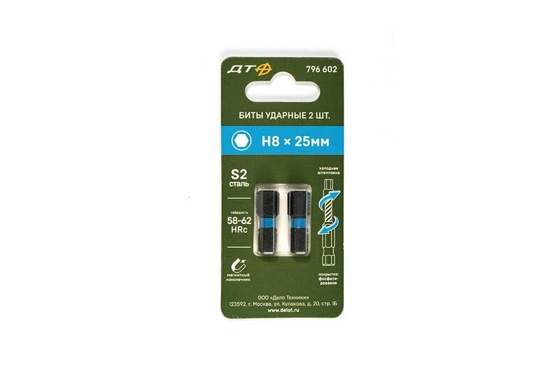 Биты ударные для шуруповёрта 1/4" H8 х 50 мм 2 шт., Дело Техники, 796622
