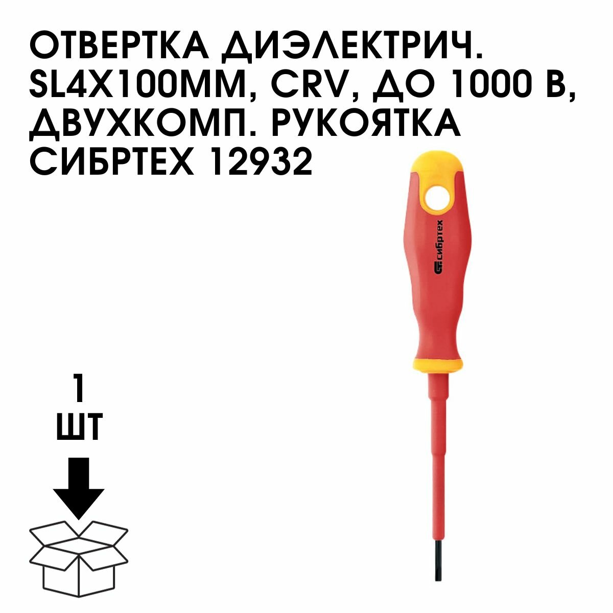 Отвертка диэлектрическая SL4 х 100 мм, CrV, до 1000 В, двухкомпонентная рукоятка Сибртех