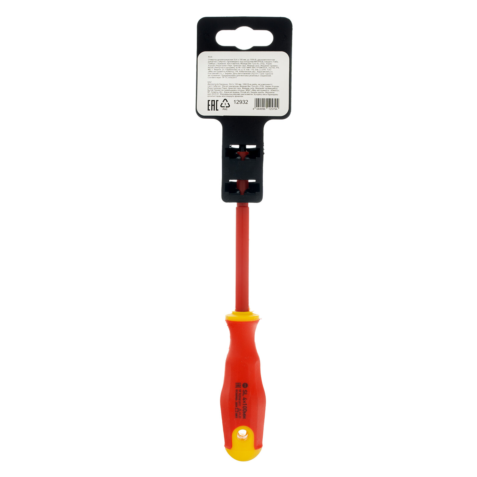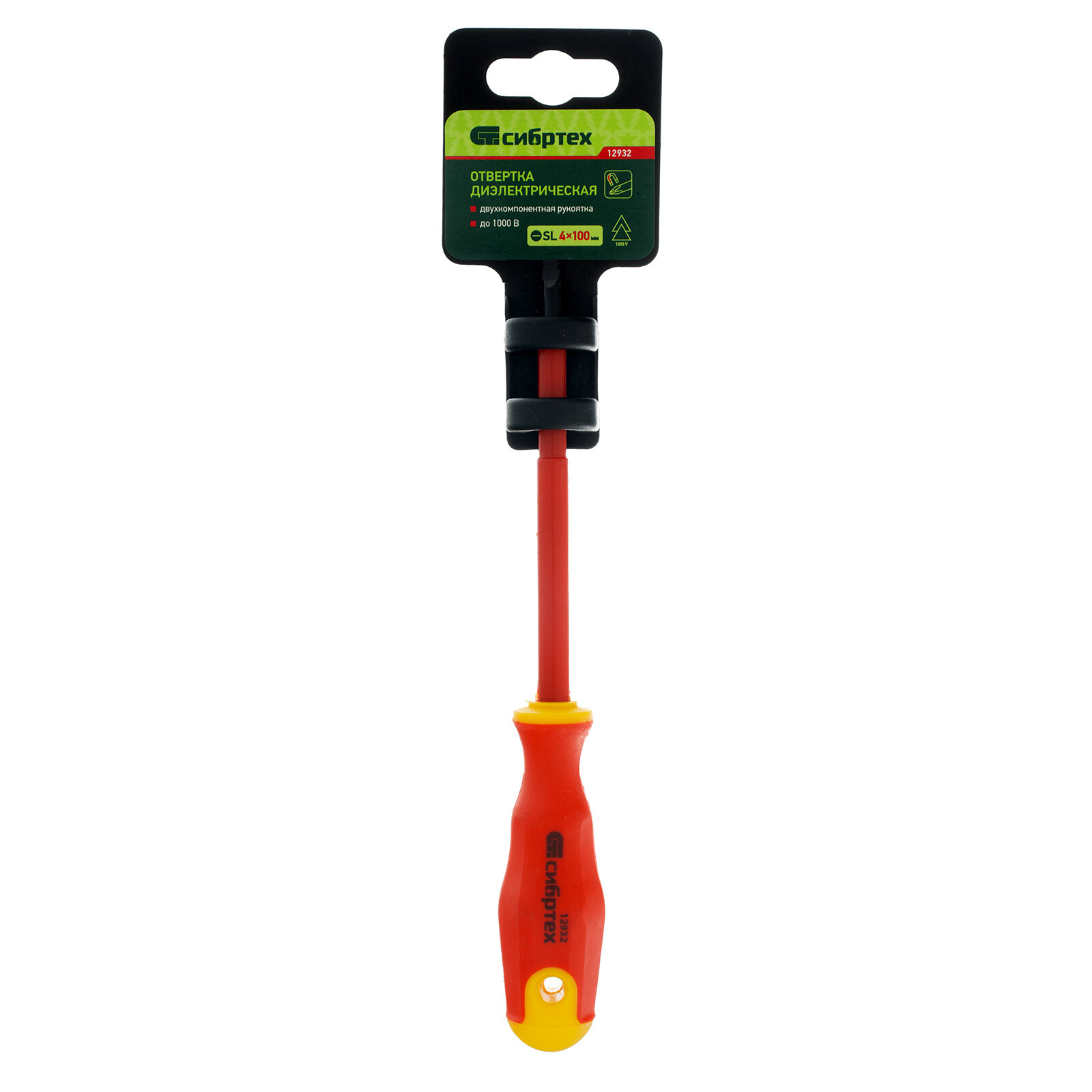 Купить Отвертка диэлектрическая SL4 х 100 мм, CrV, до 1000 В, двухкомпонентная рукоятка СИБРТЕХ 12932