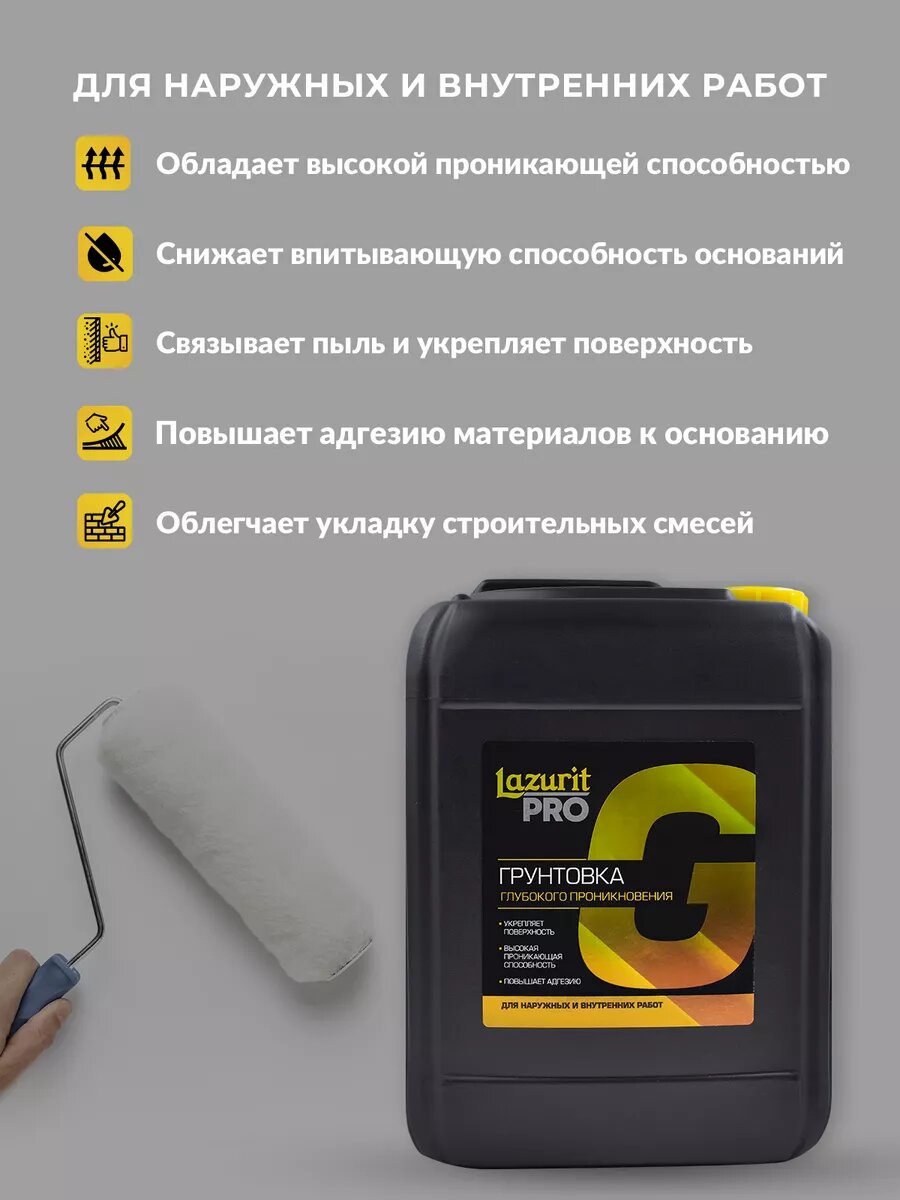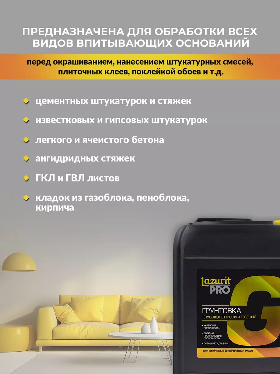 Lazurit PRO Грунтовка Глубокого проникновения 10л интересное: