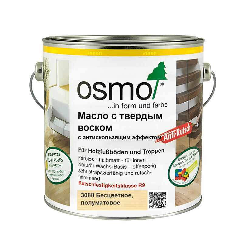 Масло с твердым воском с антискользящим эффектом OSMO 3088, бесцветное, полуматовое, 0,220мл