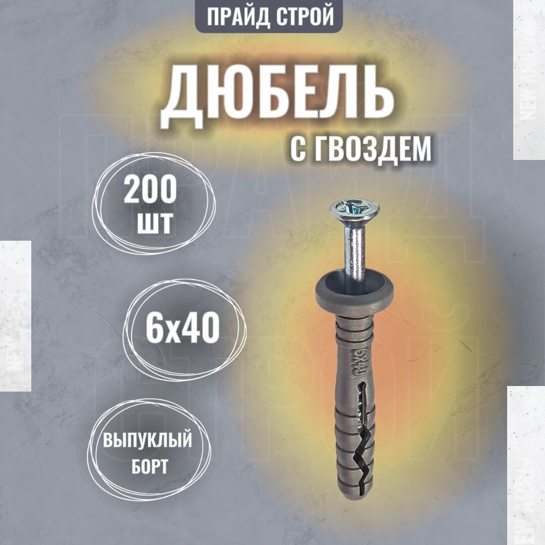 | Дополнительная информация | дюбель-гвоздь 6х40 грибовидный борт - упаковка 200 шт |