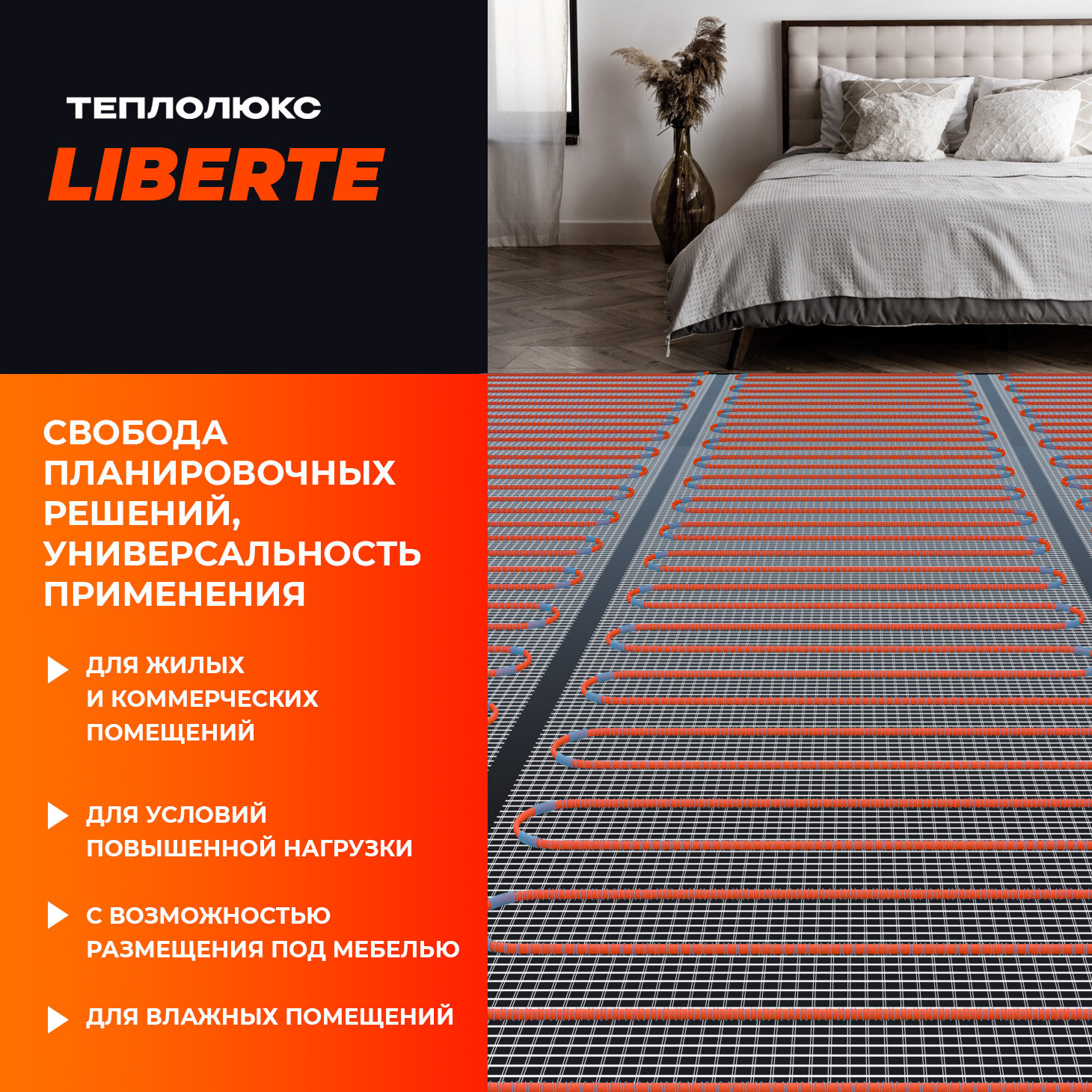 Нагревательный мат Теплолюкс "Liberte", для комфортного отопления, 2,5 м², гарантия 25 лет