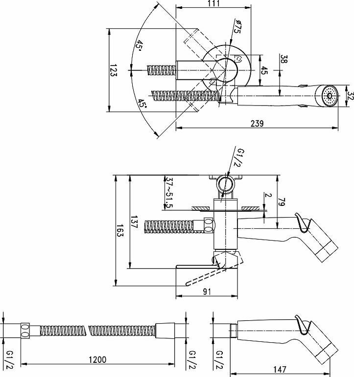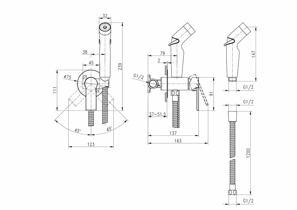 | Комплектация | рукоятка / Лейка гигиенического душа / подключение для шланга / шланг в металлической оплетке 1/2" 120см / паспорт изделия с гарантийным талоном / инструкция по эксплуатации |