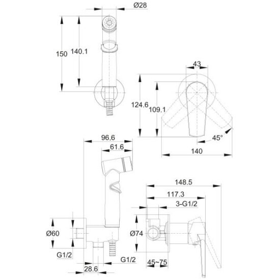 | Комплектация | рукоятка / Лейка гигиенического душа / подключение для шланга / шланг в металлической оплетке 1/2" 120см / паспорт изделия с гарантийным талоном / инструкция по эксплуатации |