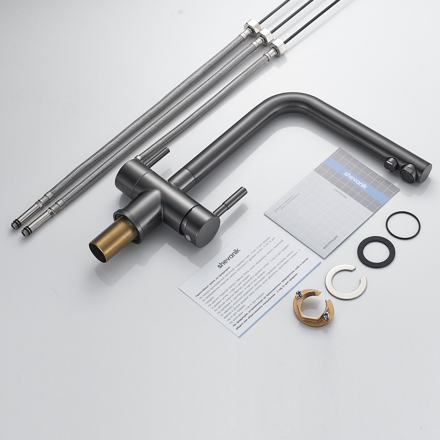 Смеситель для кухни с подключением фильтра Shevanik S468T, оружейная сталь