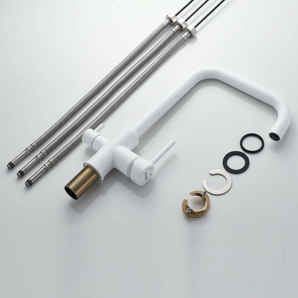 Смеситель для кухни с подключением фильтра питьевой воды S228С, белый