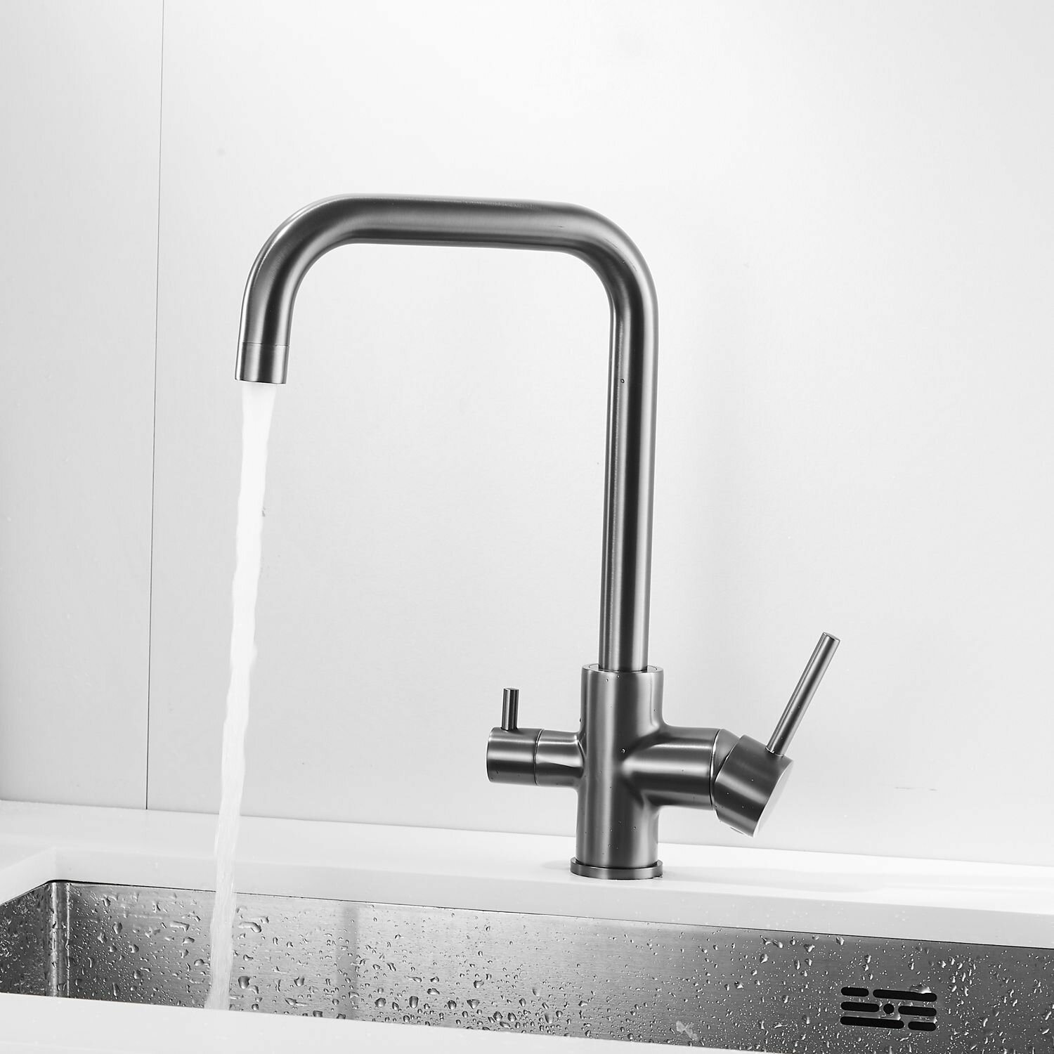 Смеситель для кухни с подключением фильтра Shevanik S228T, оружейная сталь
