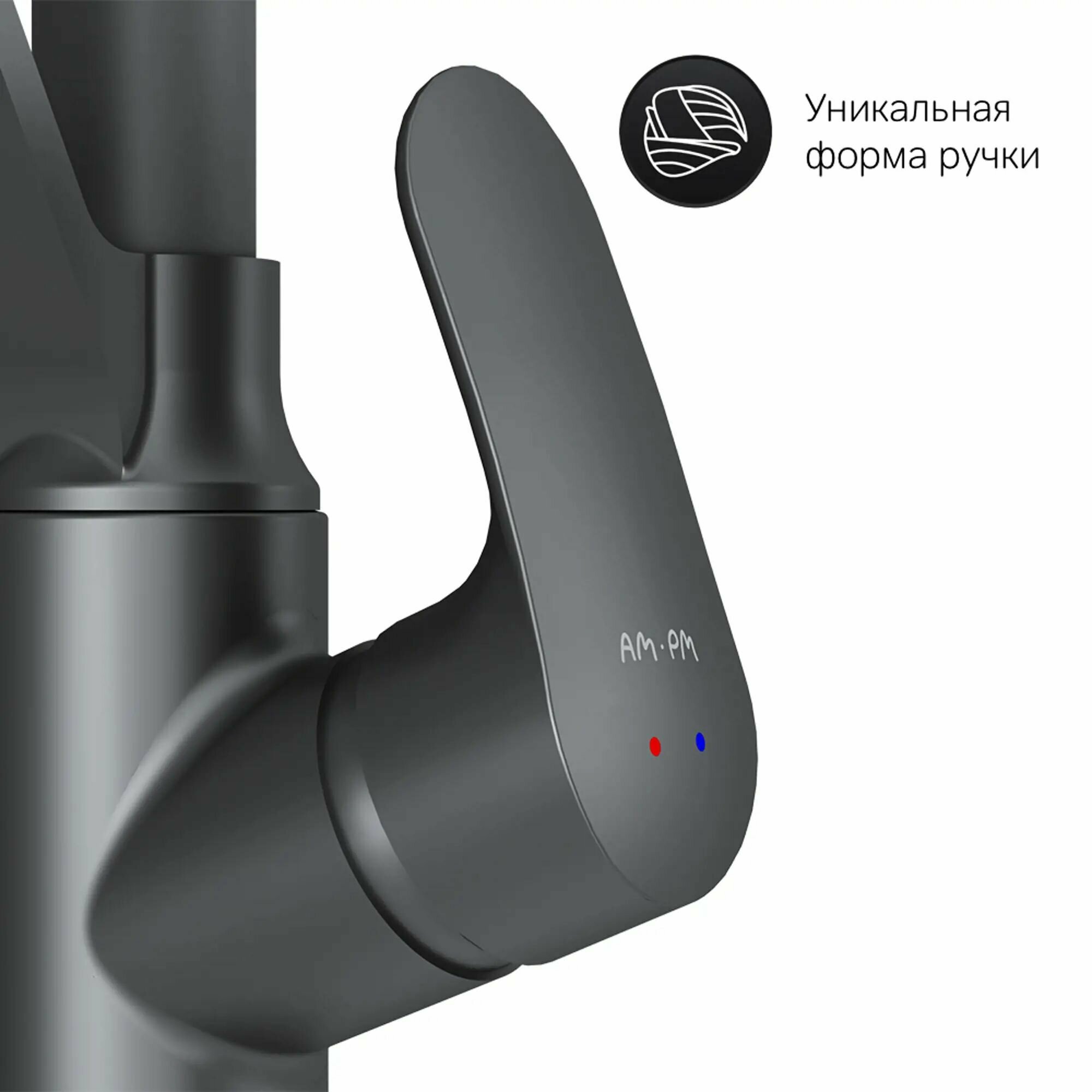 Купить Смеситель для кухни AM.PM Chic, с гибким изливом, с каналом для питьевой воды, латунь, черный, 2 в 1 управ.одной ручкой