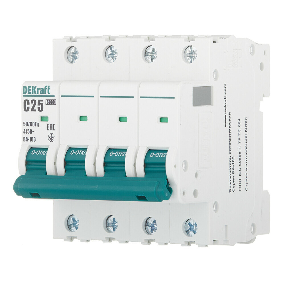 Купить Выключатель автоматический модульный 4п C 25А 6кА ВА-103 DEKraft 12323DEK